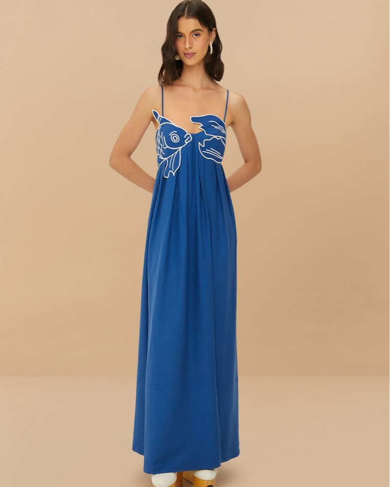 Farm Rio Blue Fish Maxi Dress