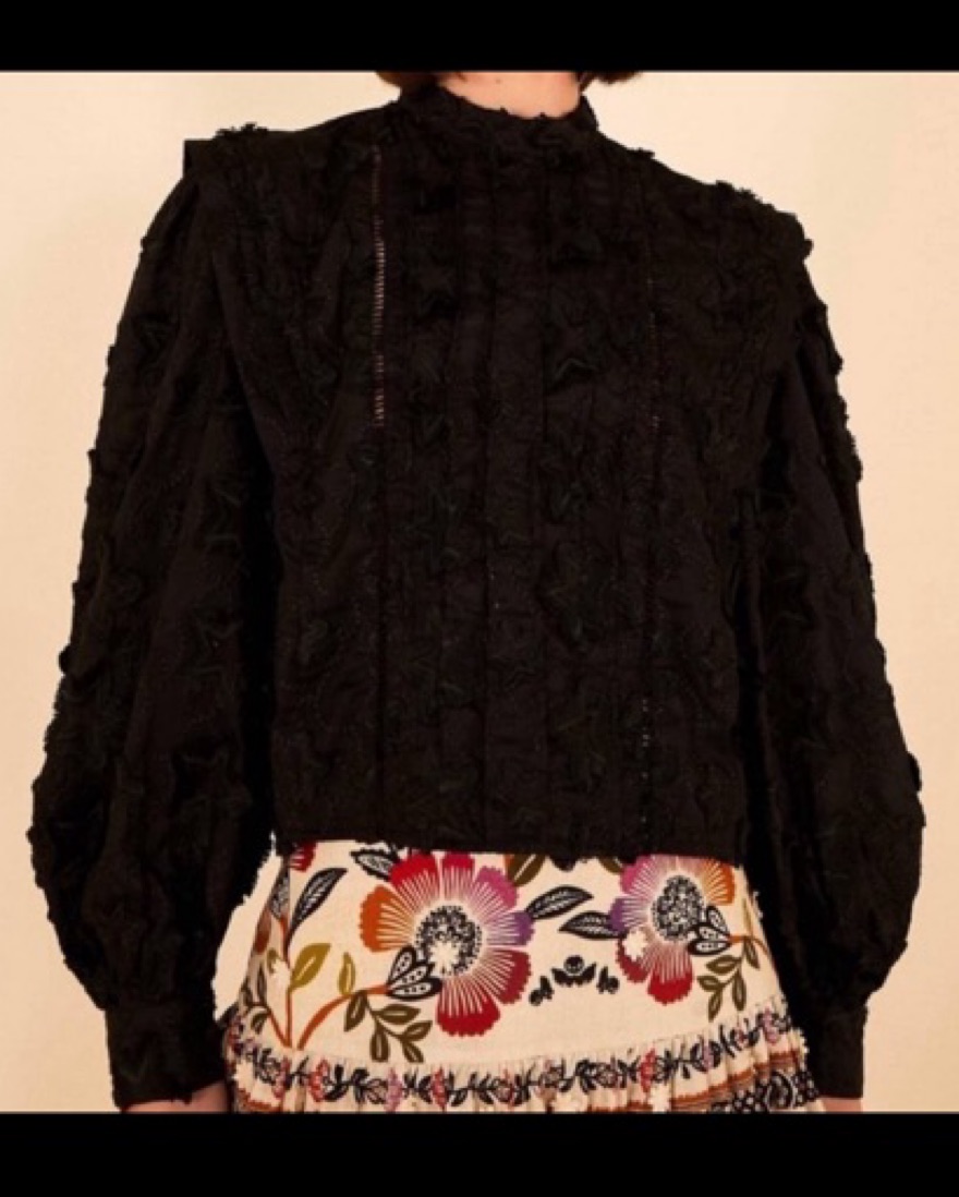 Farm Rio Black Beaded Floral Top