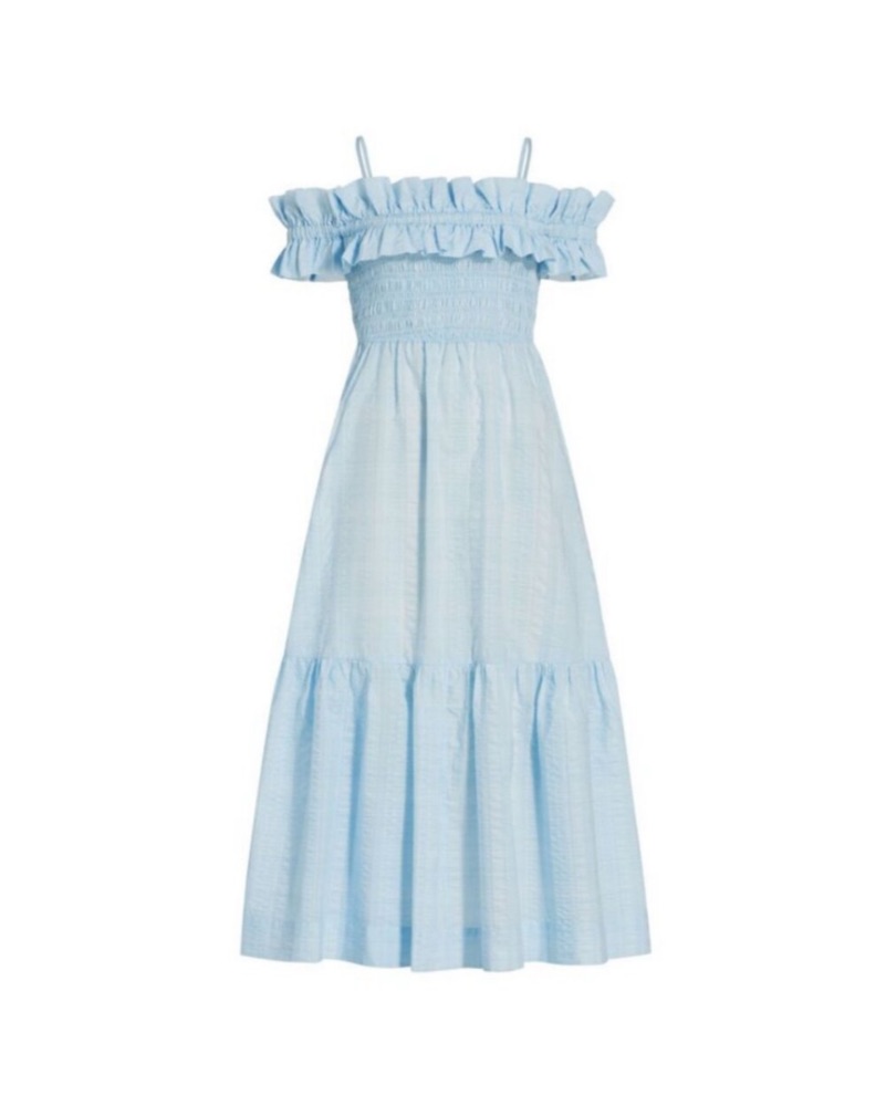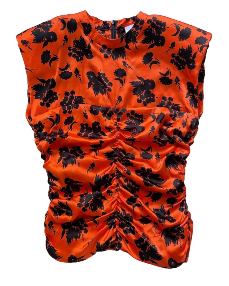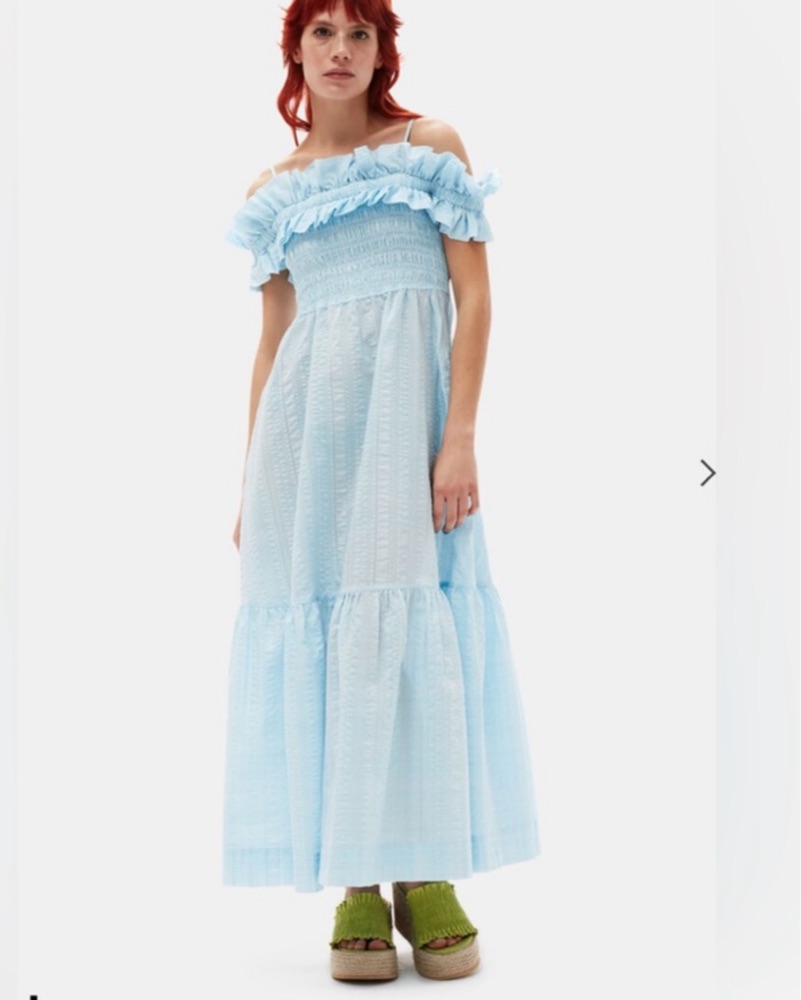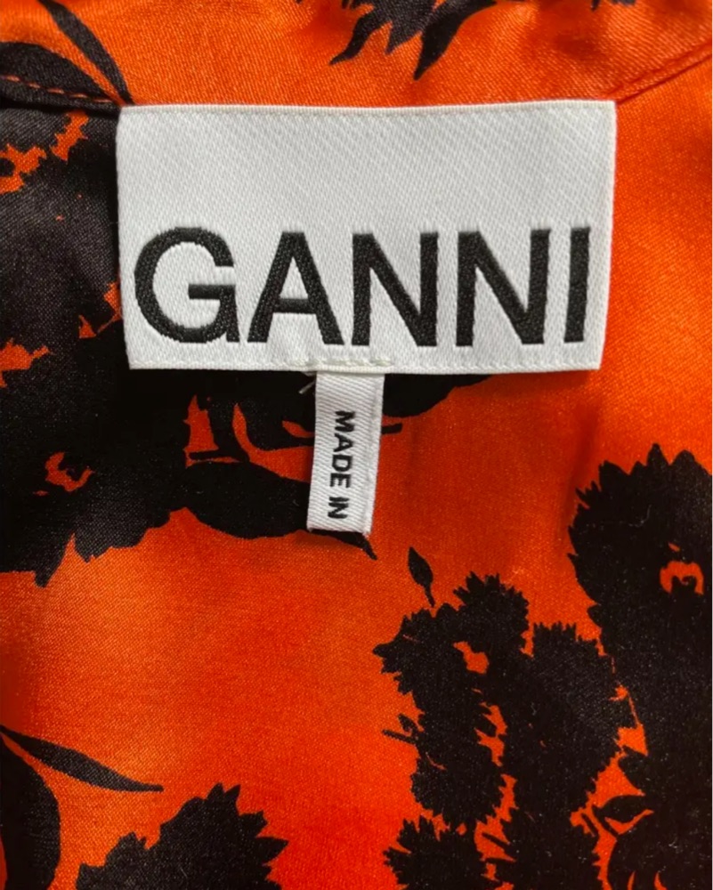 GANNI Chelsea-collar Puff-sleeve Cloqué