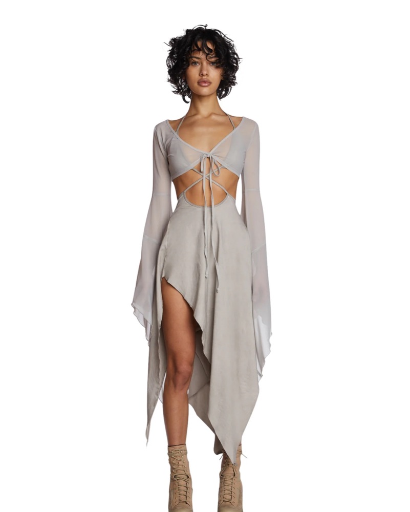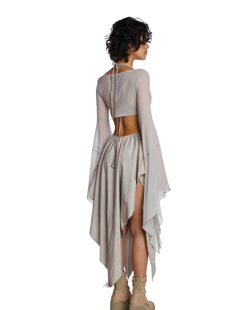 ECHO ASYMMETRICAL MESH WRAP DRESS