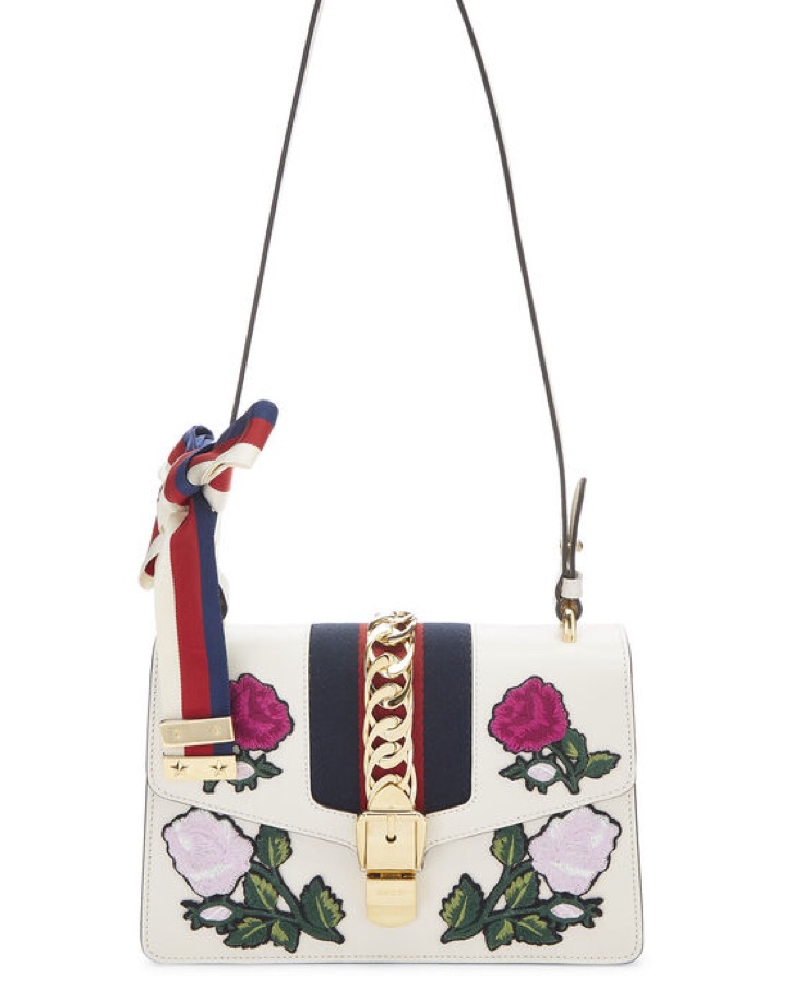 Gucci White Floral Embroidered Bag