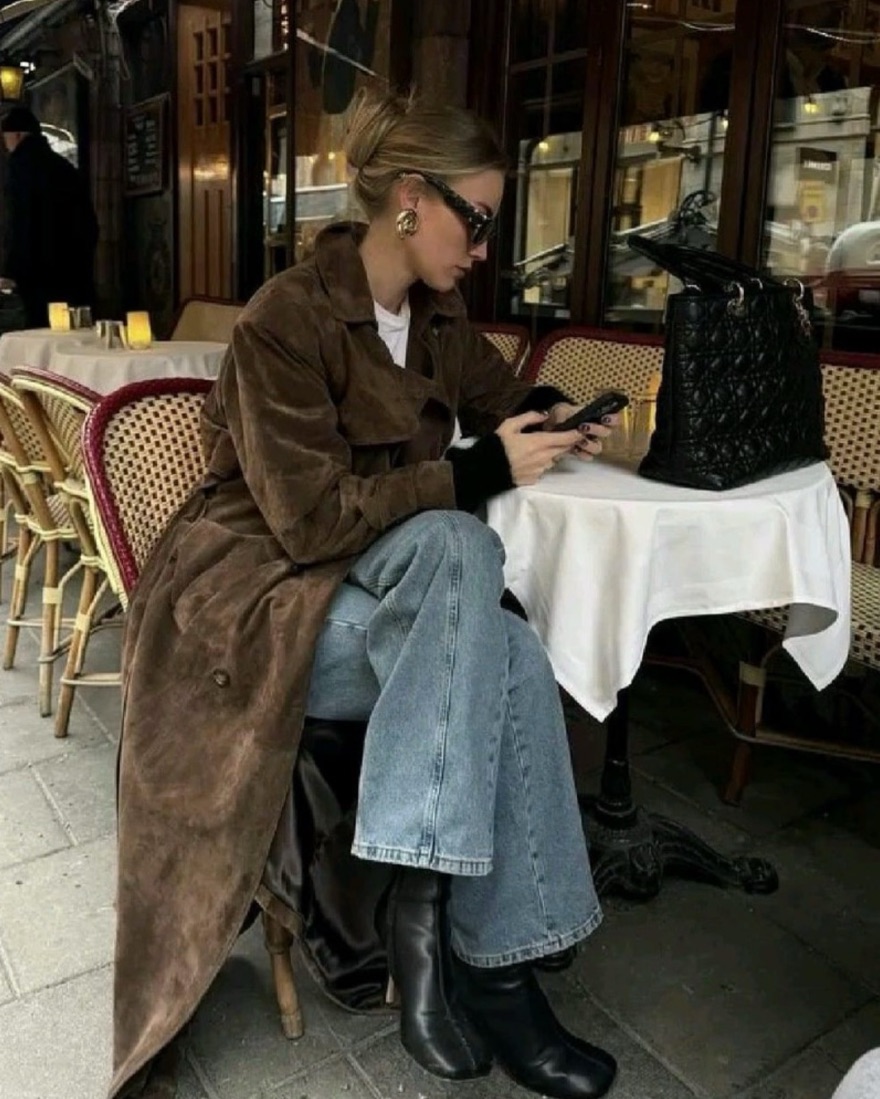 Faux Suede Trench Coat