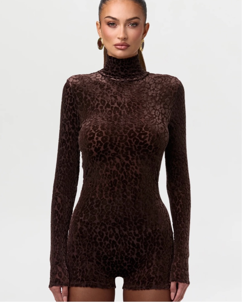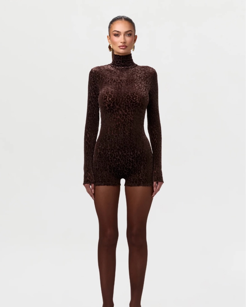 Naked Wardrobe Cheetah Turtleneck Romper