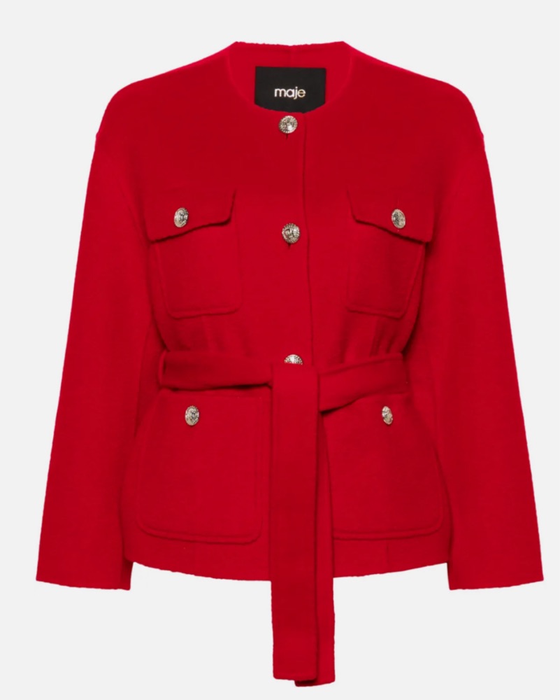 Maje Red Belted Coat