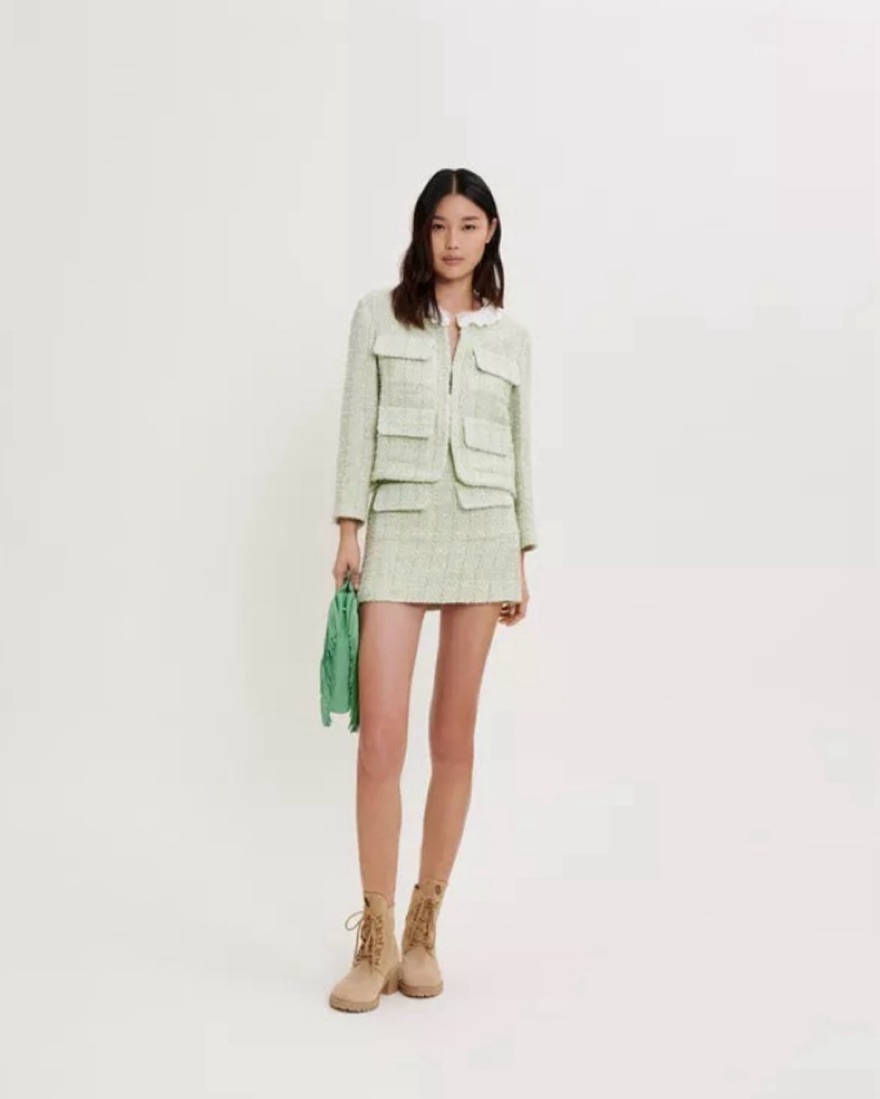 Maje Green Tweed Jacket & Mini Skirt Set