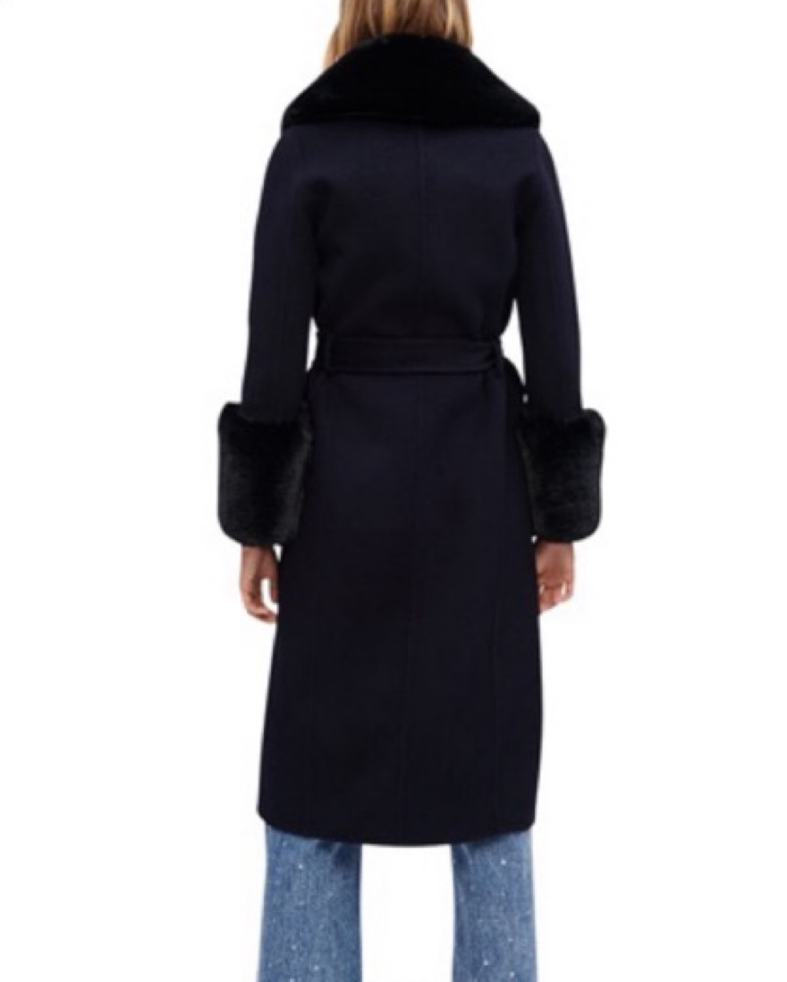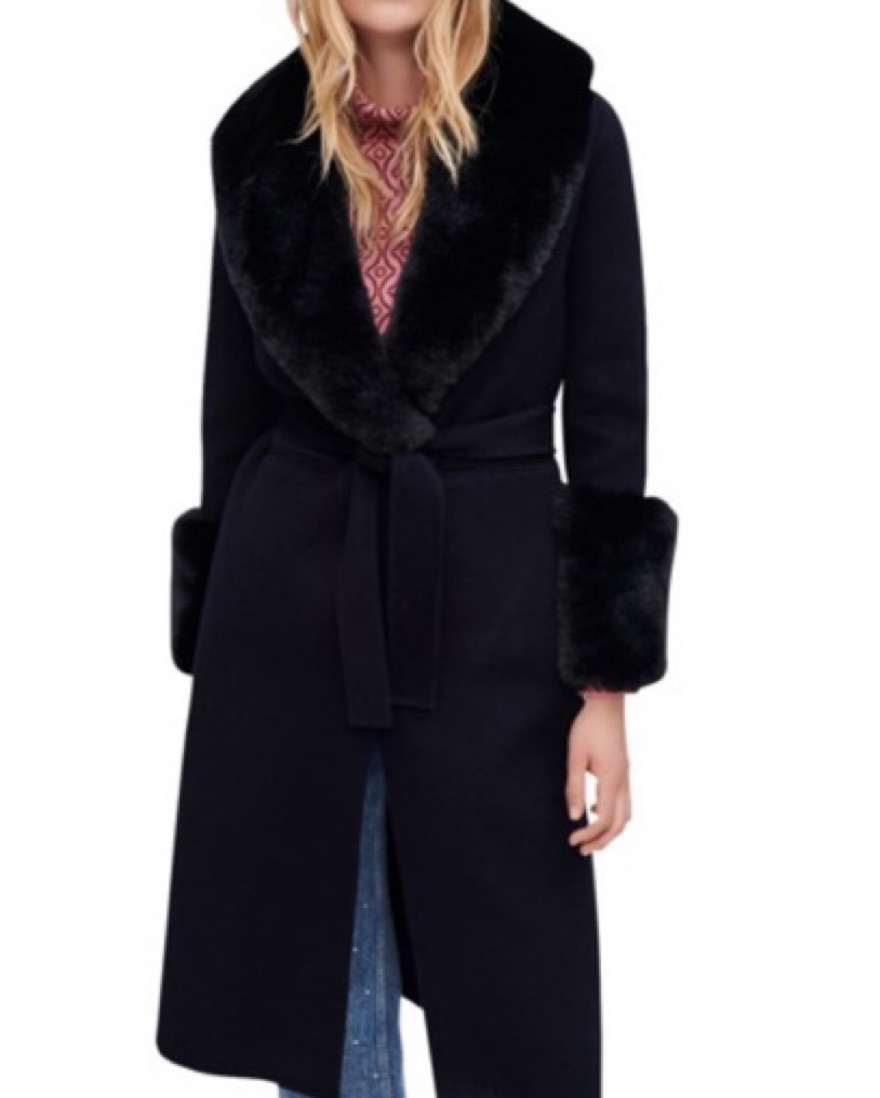 Maje Dark Blue Fur Trim Coat