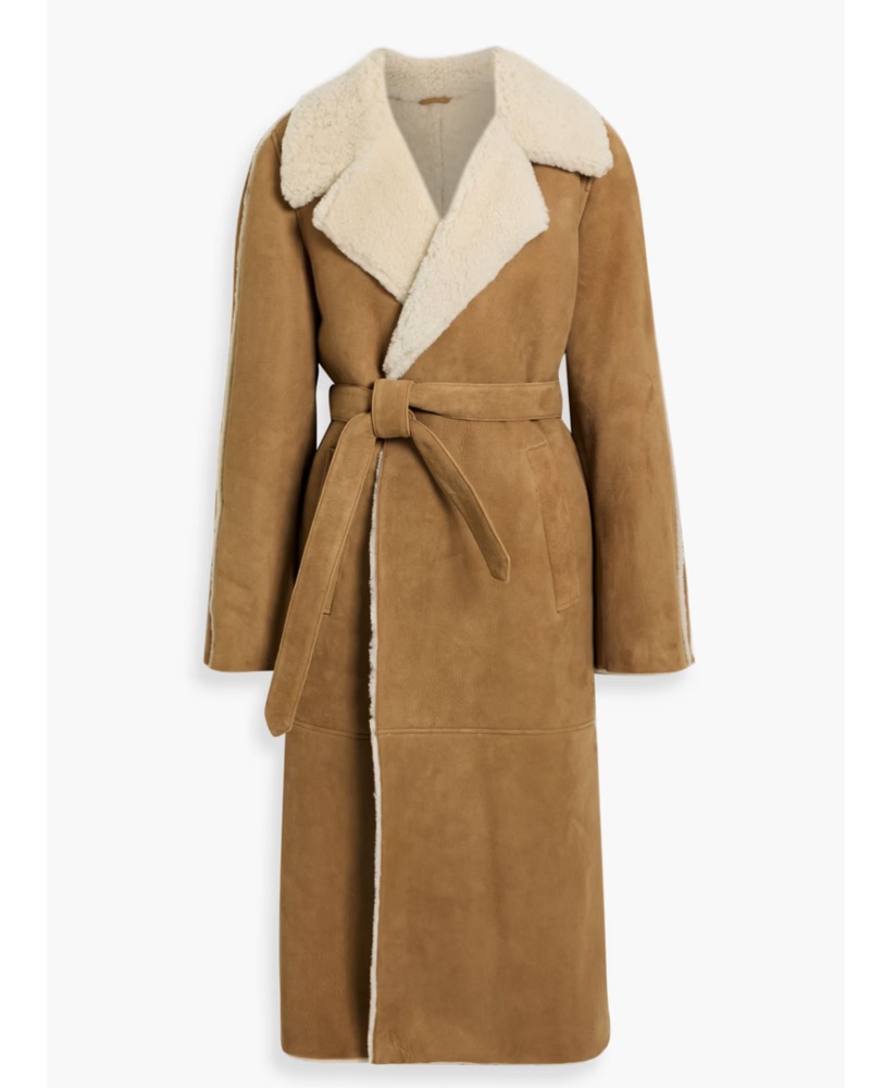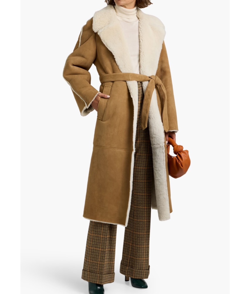 Maje Camel Shearling Belted Coat