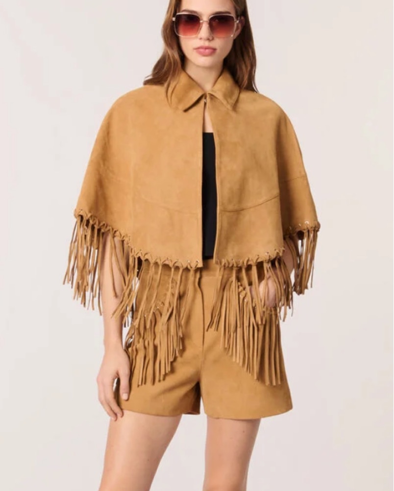 Maje Short Leather Fringed Cape