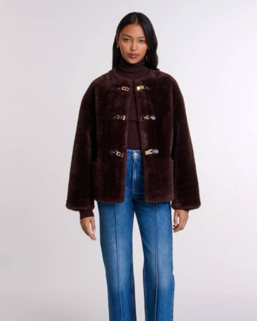 Maje Brown Faux Fur Coat