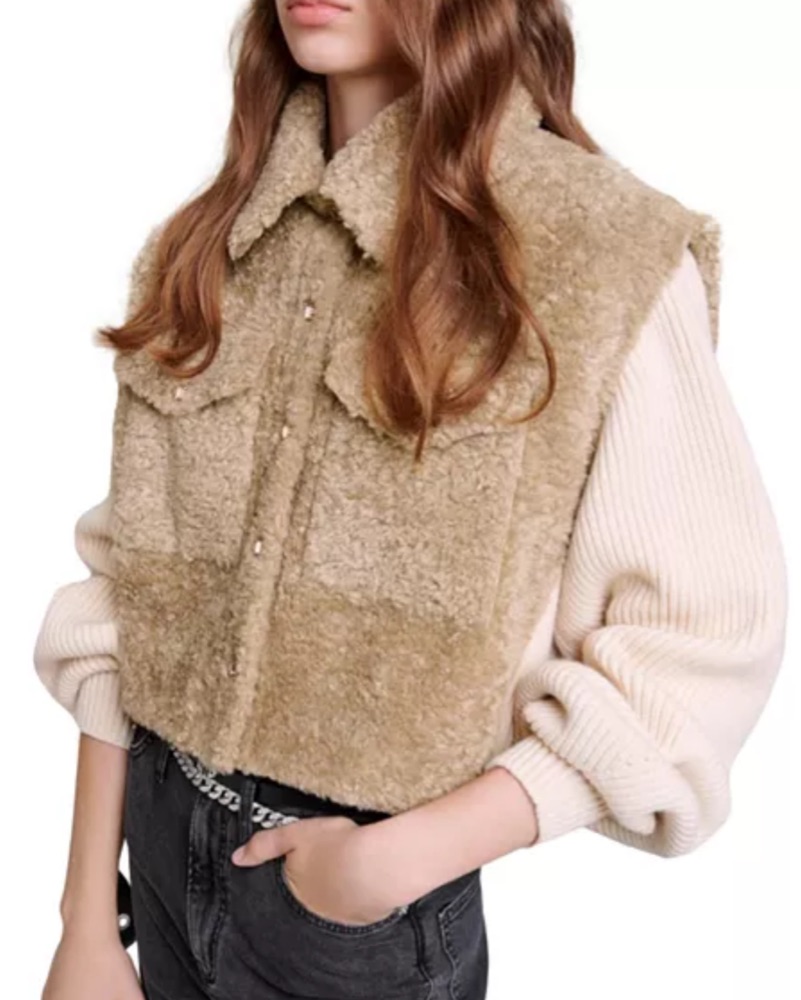 Maje Faux Fur Knit Jacket