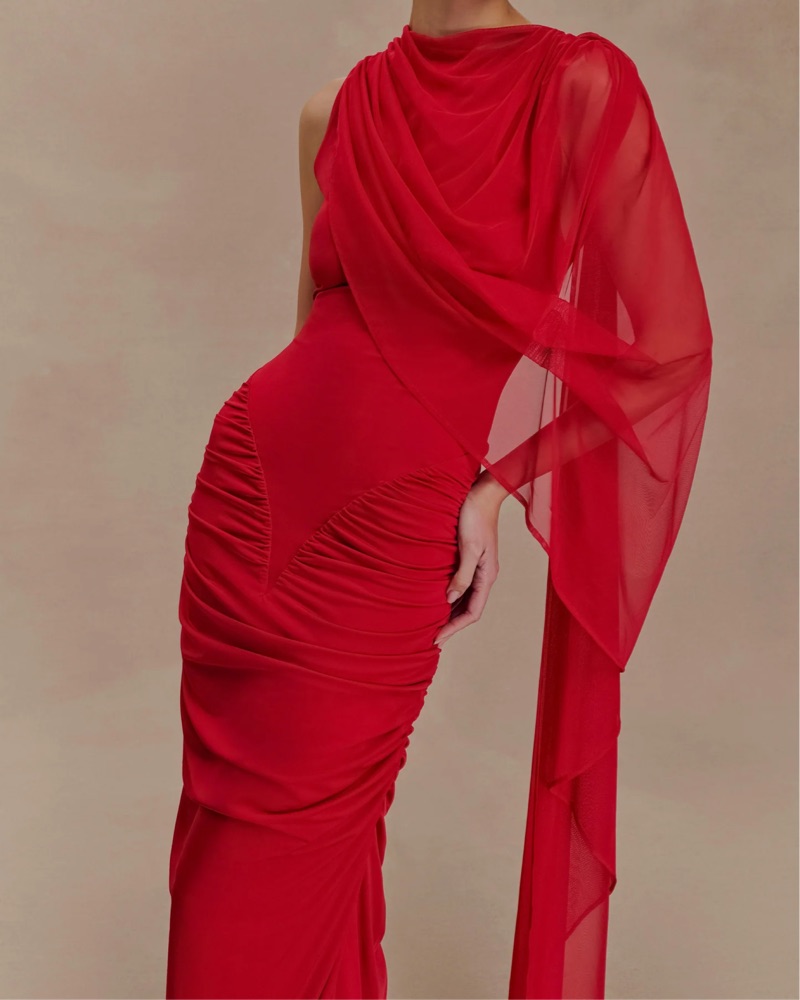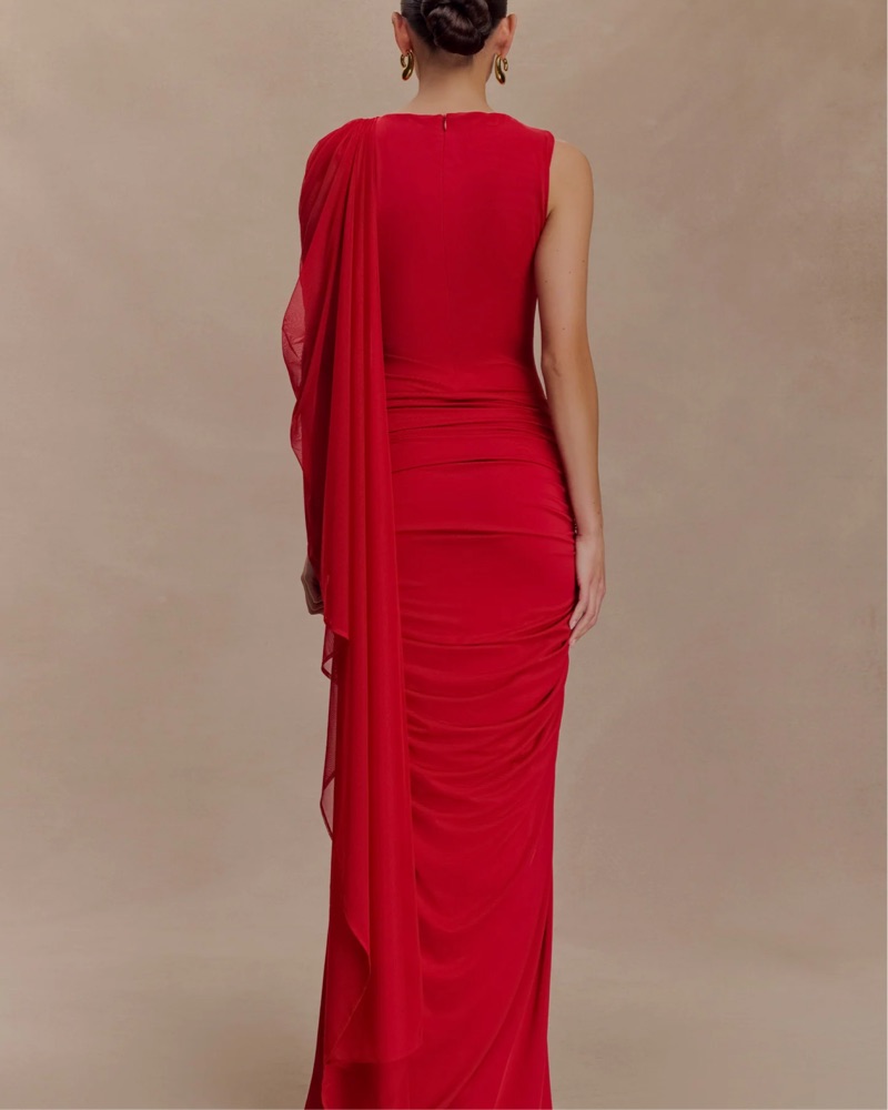 Meshki Red Amandine Draped Gown