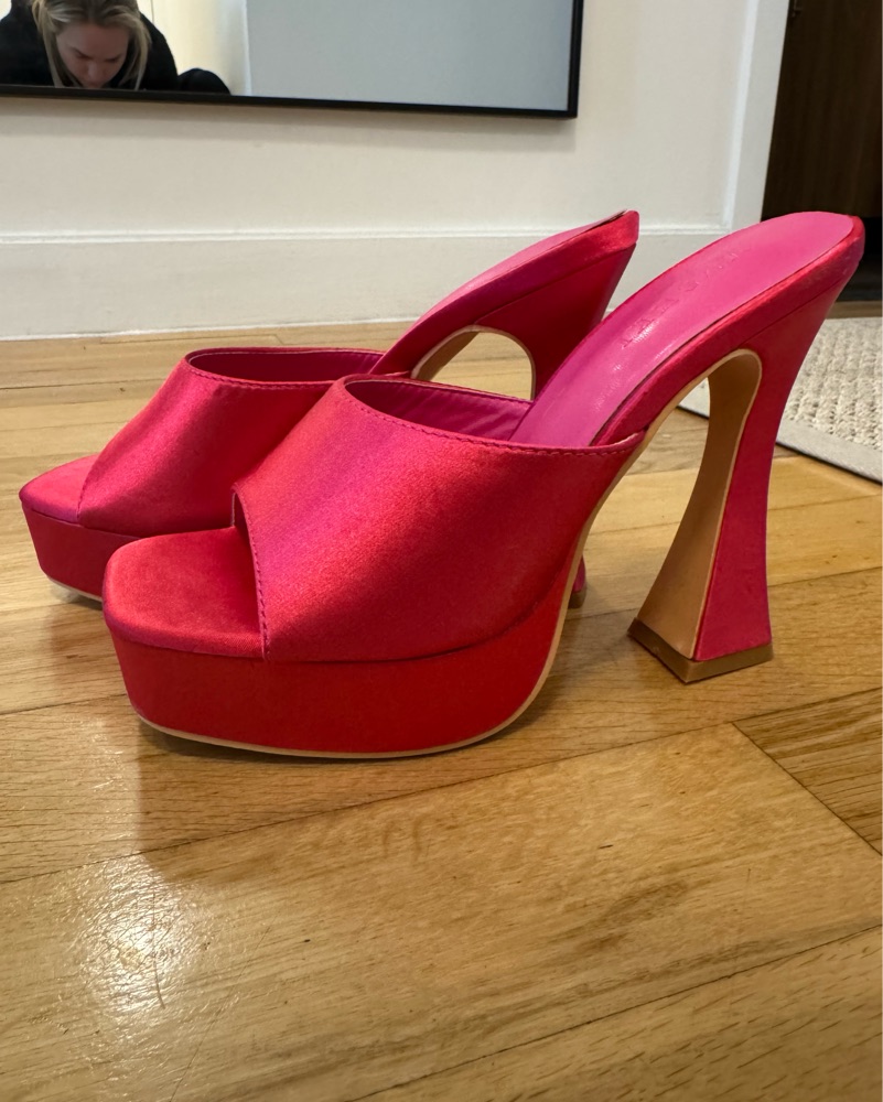 Meshki Pink Satin Platform Heels