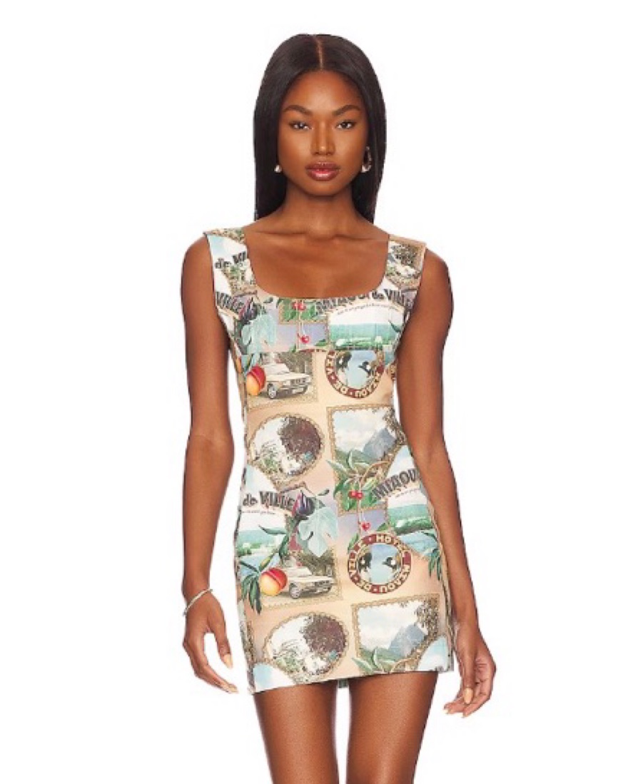 Miaou Newspaper Halter Backless Dress