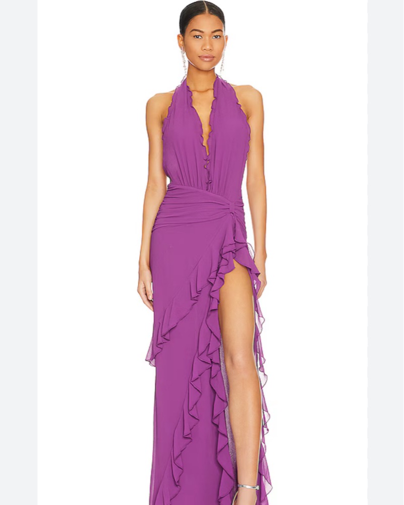 Purple NBD Halter Slit Maxi Dress
