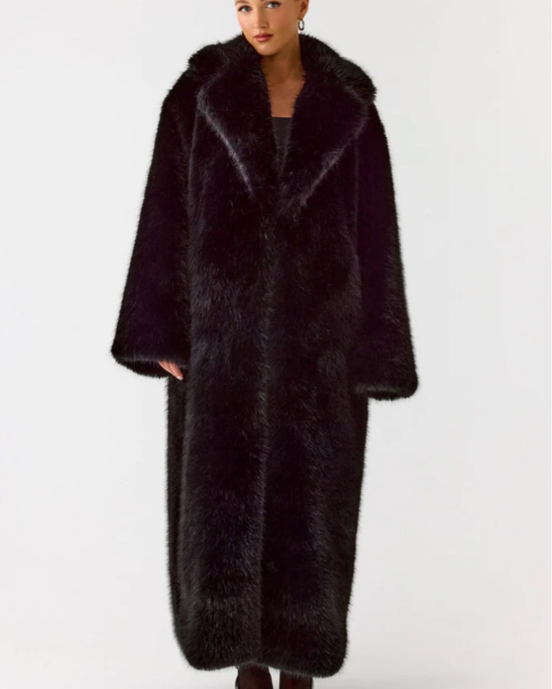 Black Full-Length Faux Fur Maxi Coat