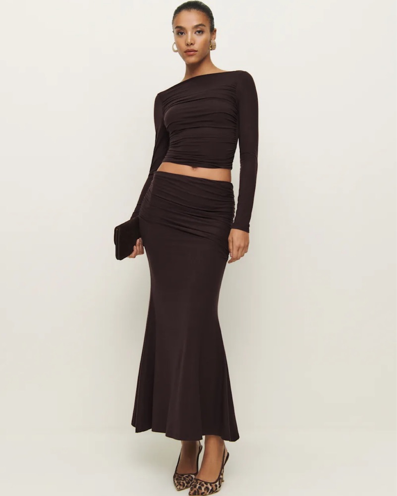 Reformation Sultry Brown Ruched Set