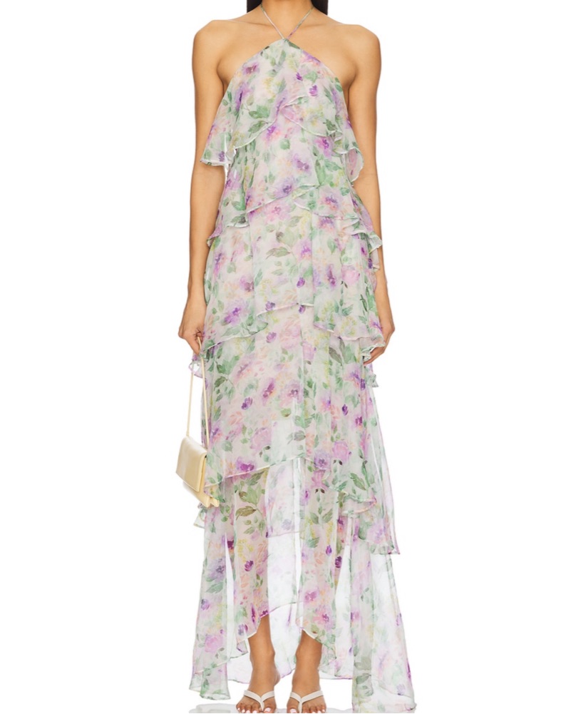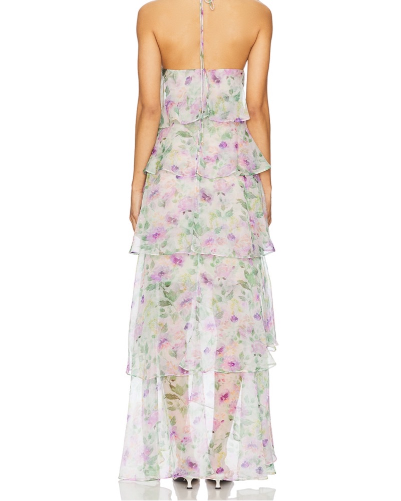Floral Ruffle Tiered Halter Maxi Dress