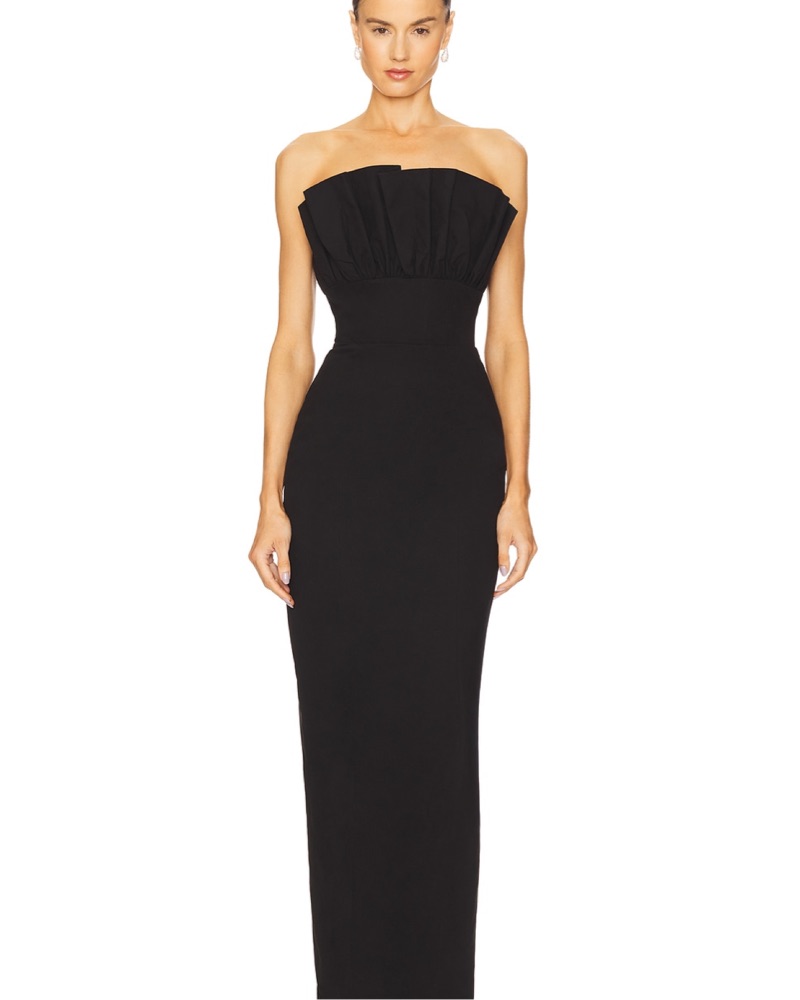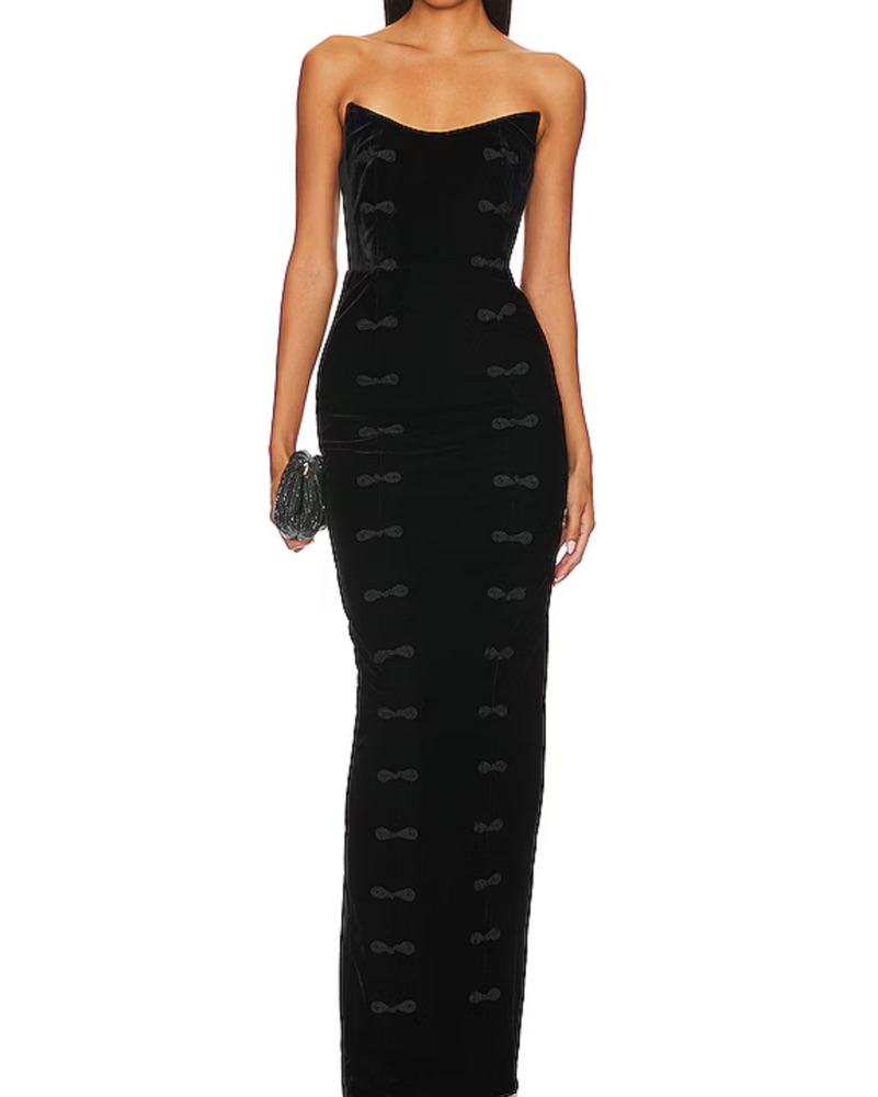 SAU LEE Esther Black Bow Strapless Gown