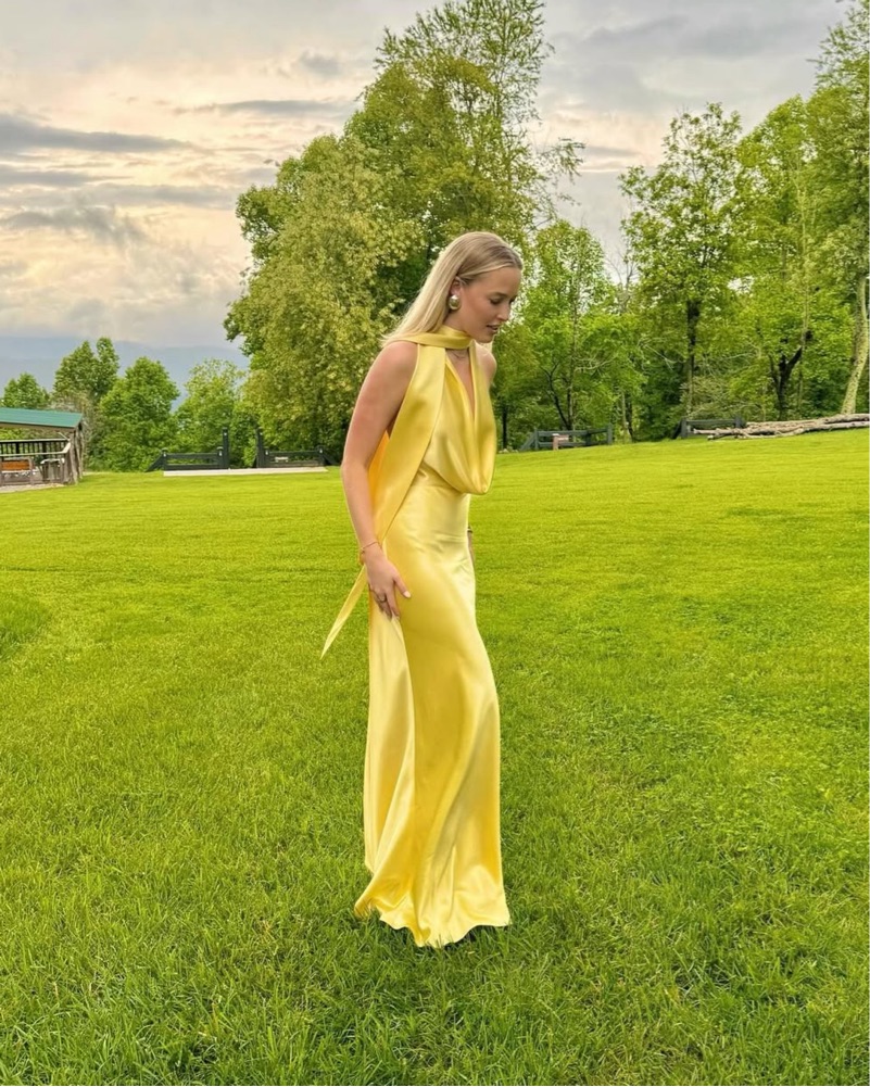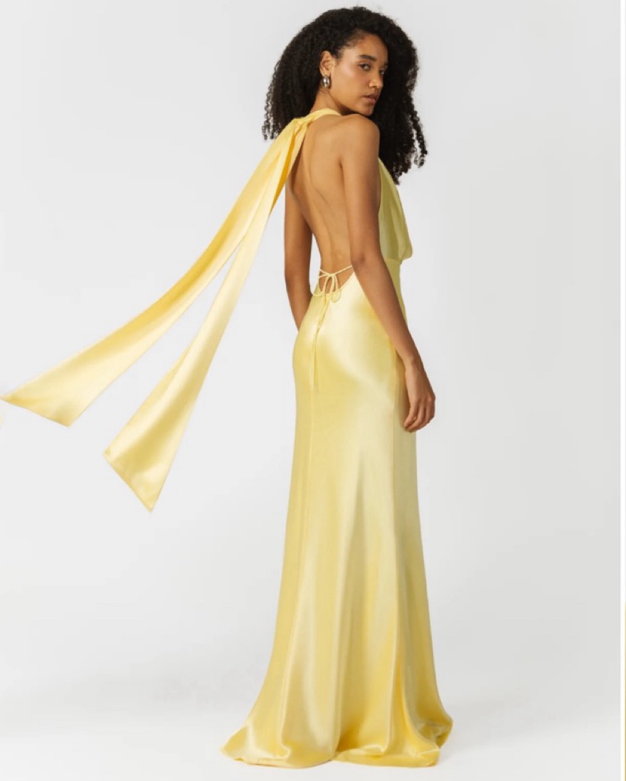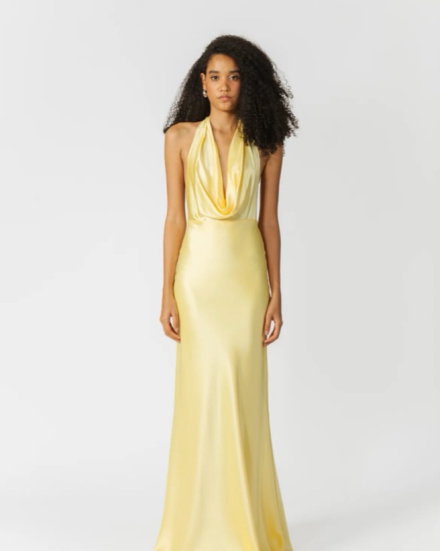 SAU LEE Pearl Satin Gown In Yellow