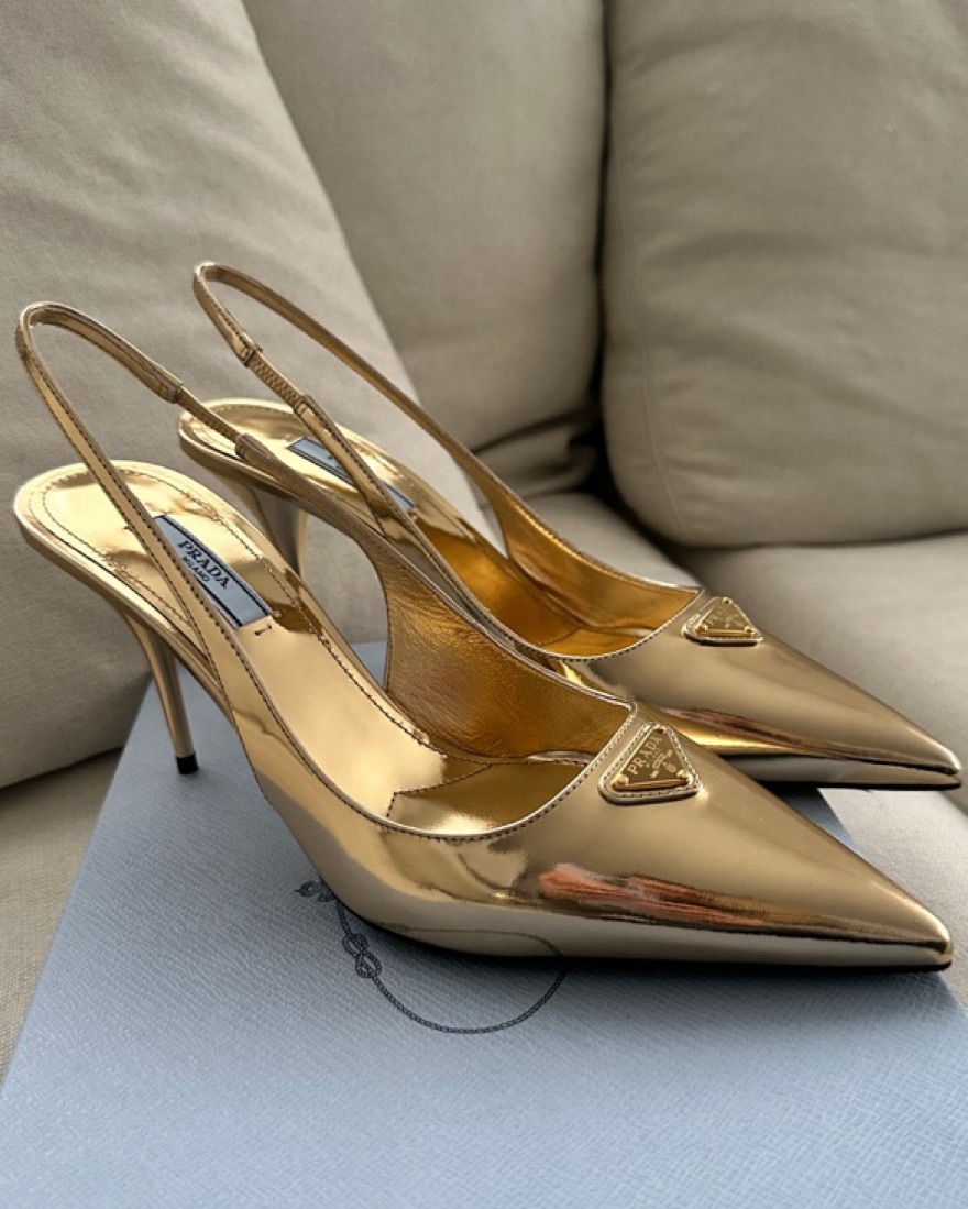 Prada Gold Leather Slingback Pumps