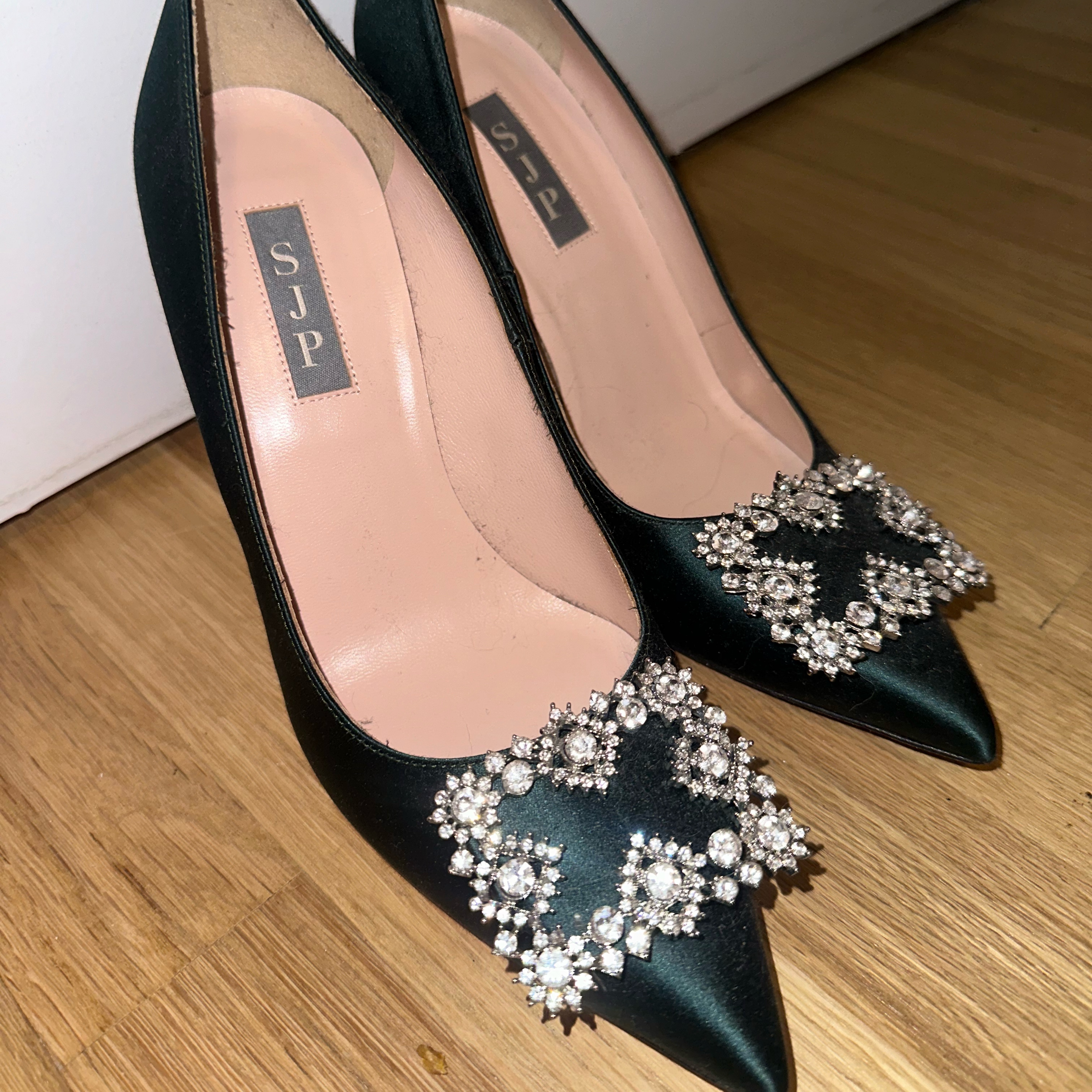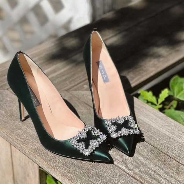 SJP Satin Heels In Emerald