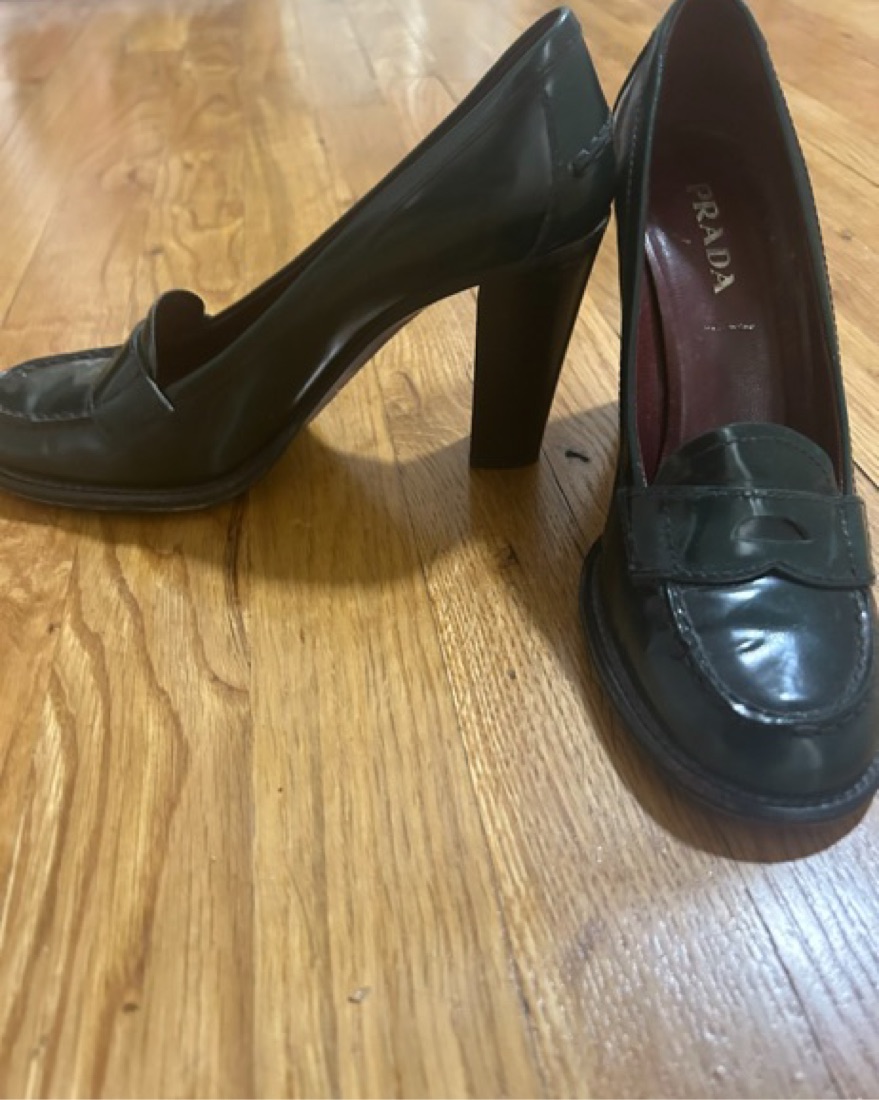 Dark Green Prada Loafer Heels