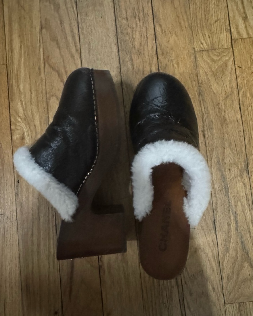 CHANEL 2019 Shearling Plateau Clogs
