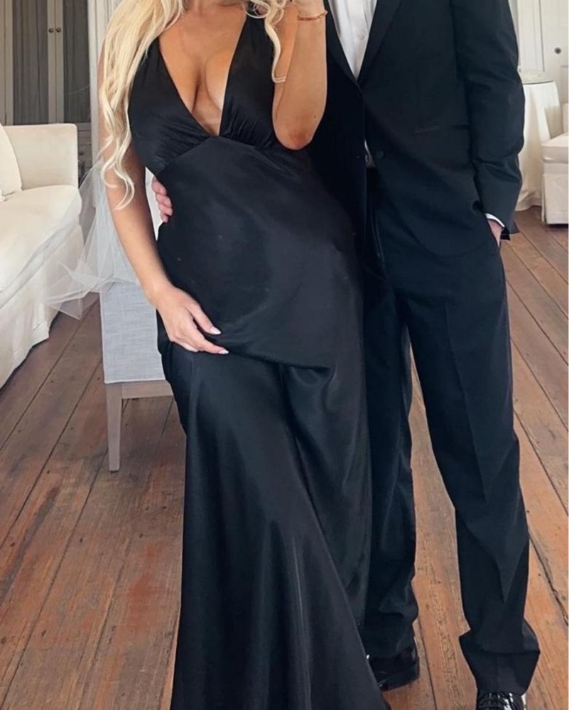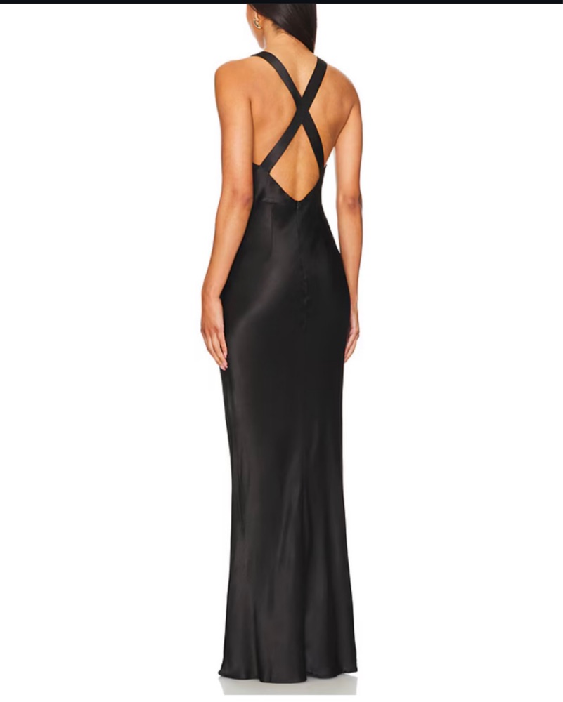 Sleek Black Plunging Backless Maxi Dress