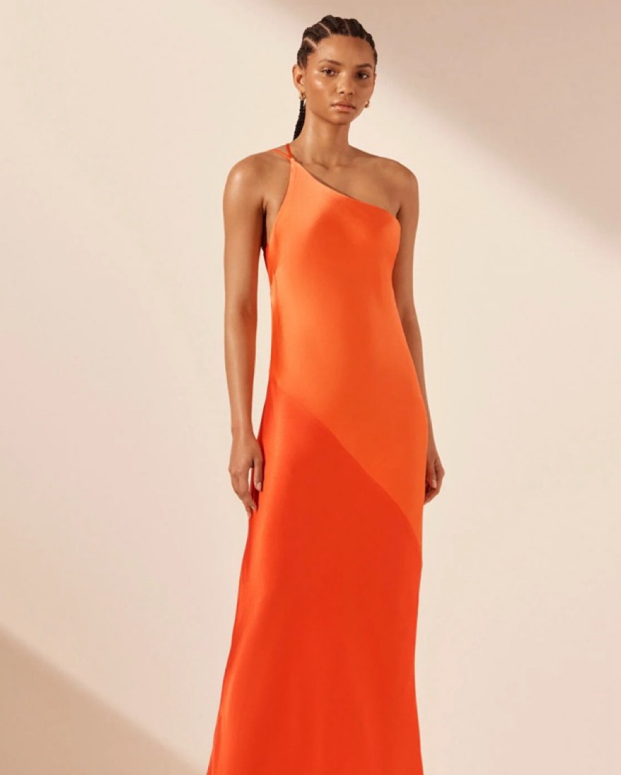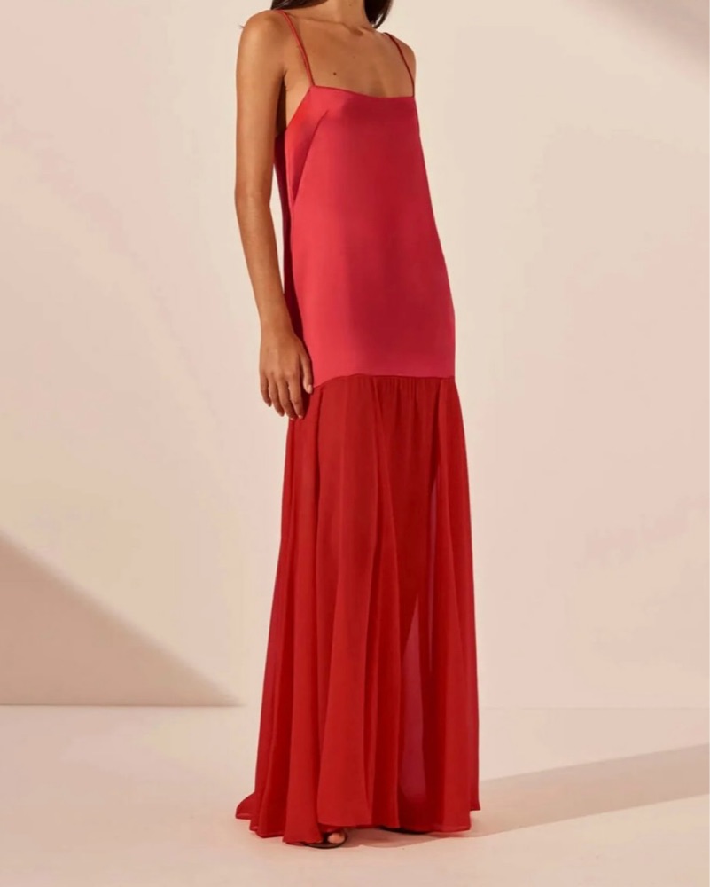 Spliced Maxi Dress In Red Orange
