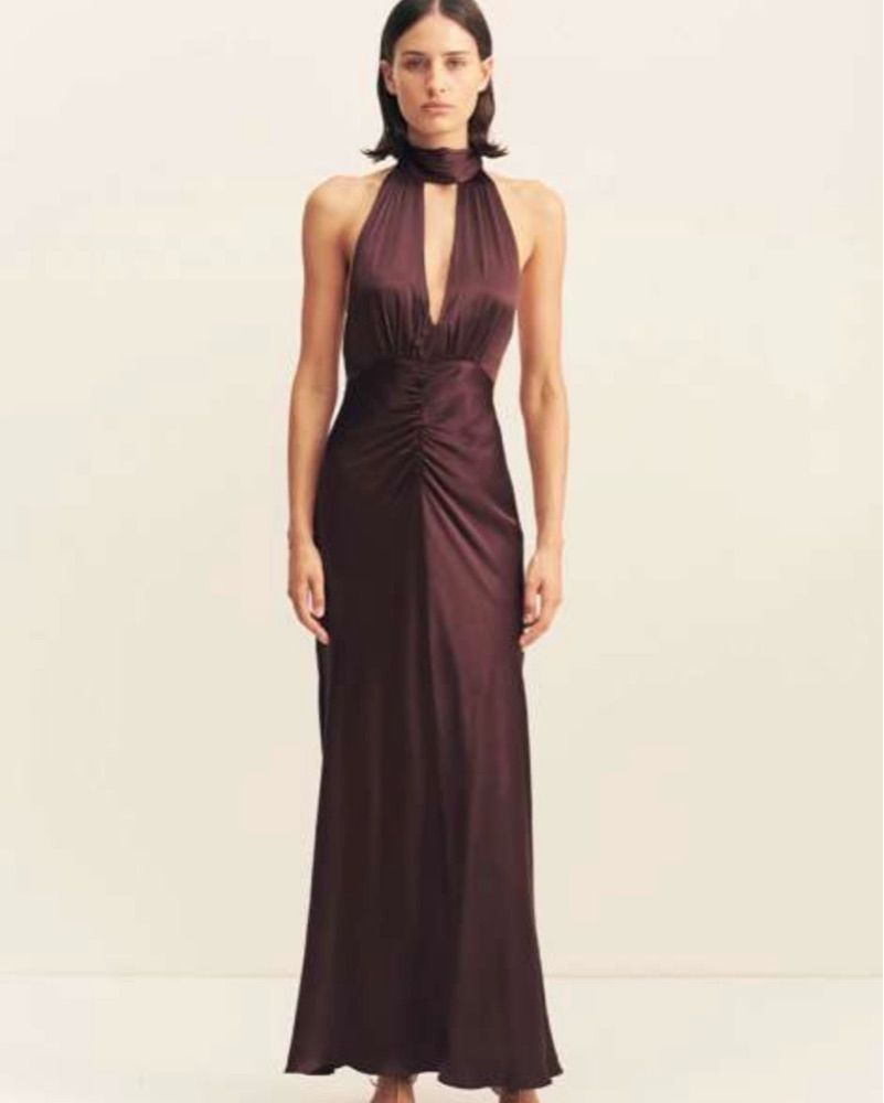 Shona Joy Burgundy Brown Long Dress