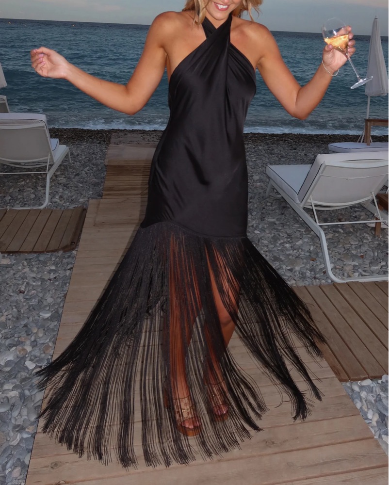 Captivating Fringe Halter Maxi Dress
