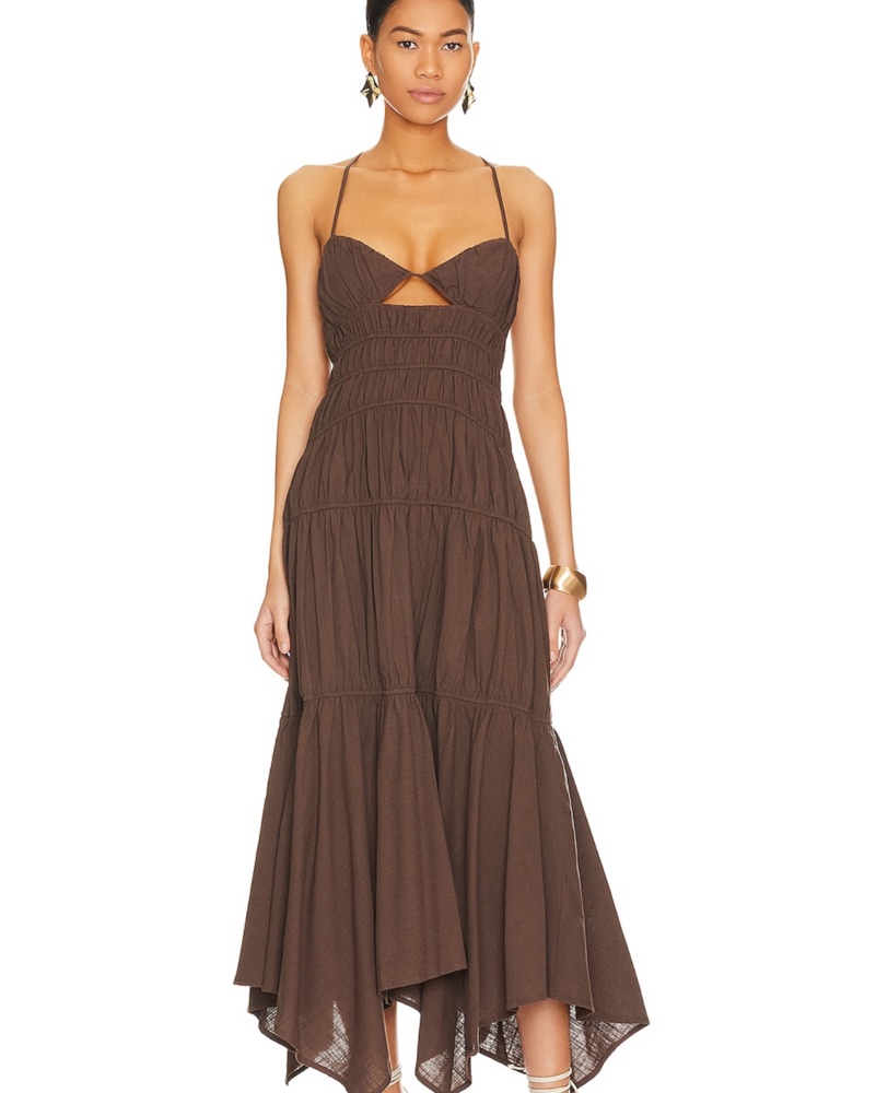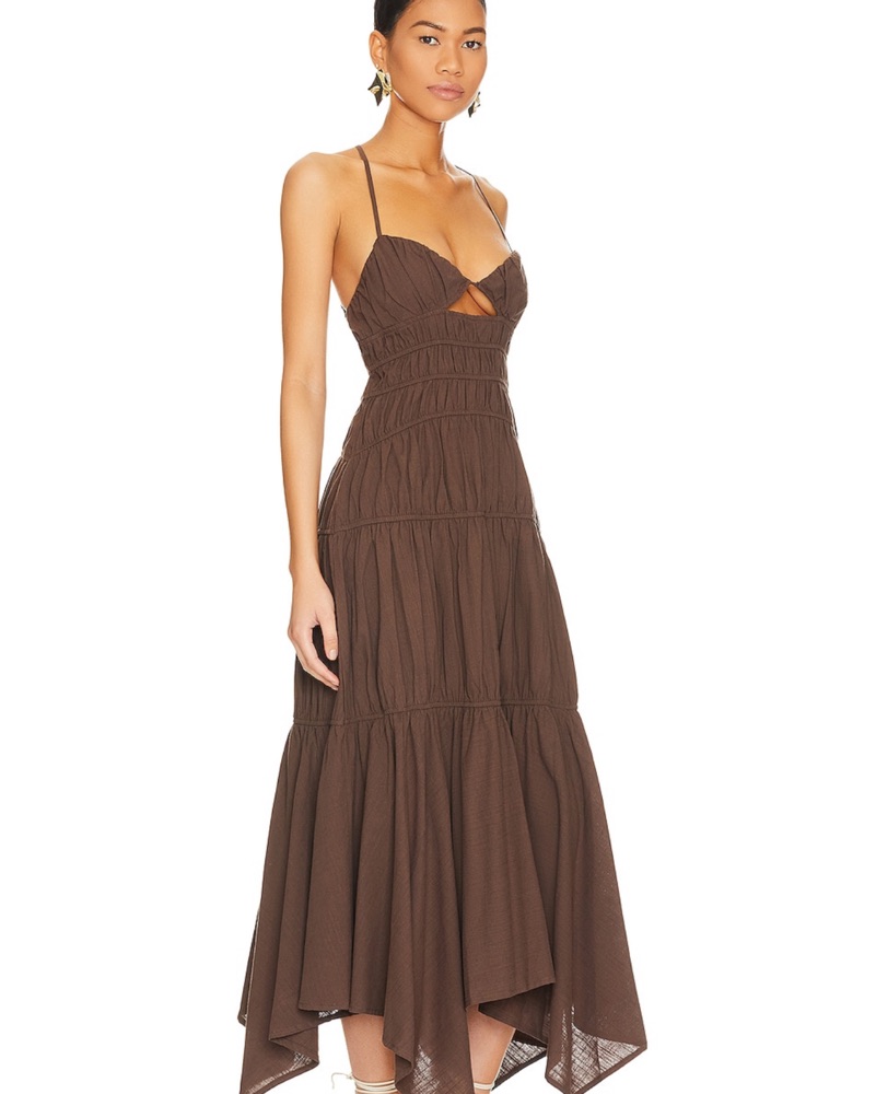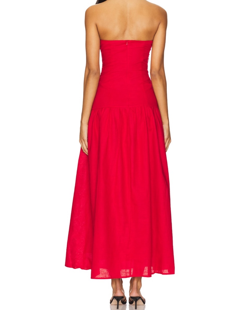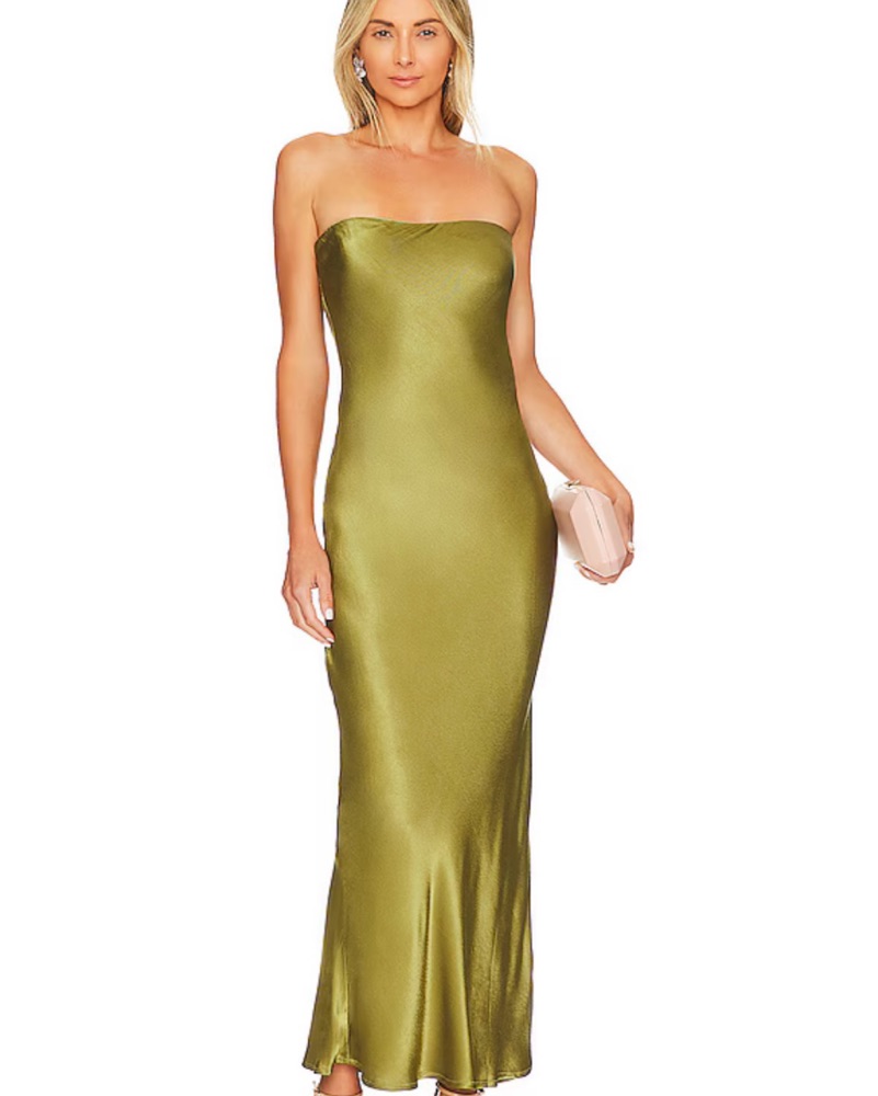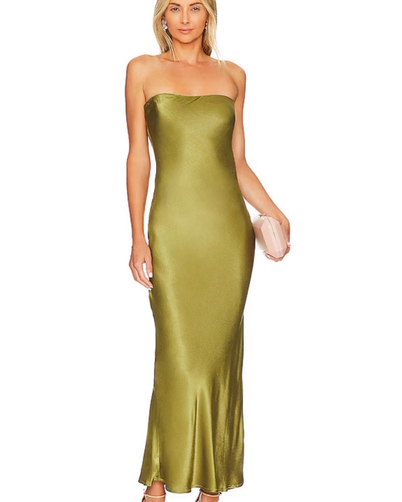 REVOLVE STRAPLESS MIDI DRESS IN OLIVE