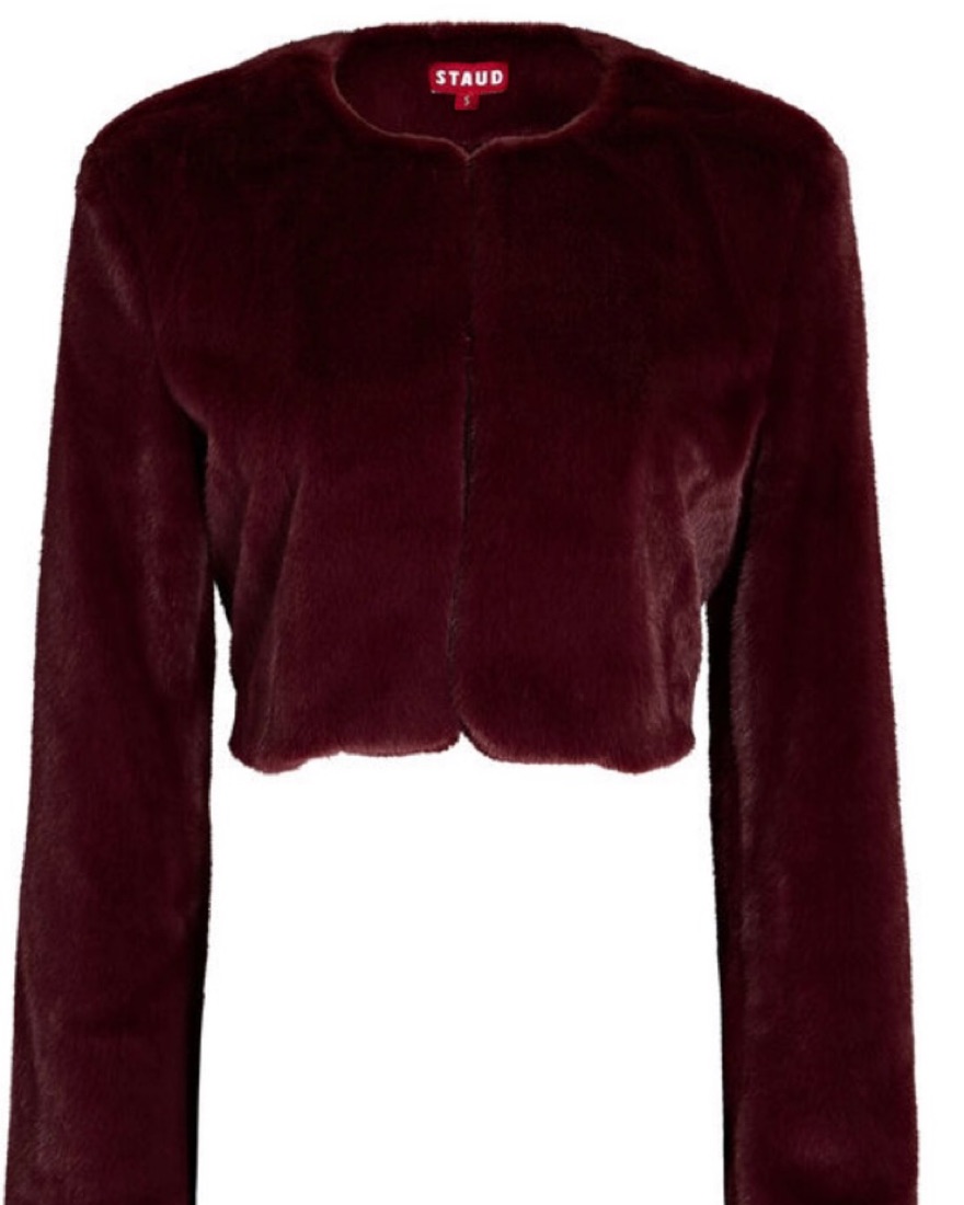 staud burgundy faux fur jacket