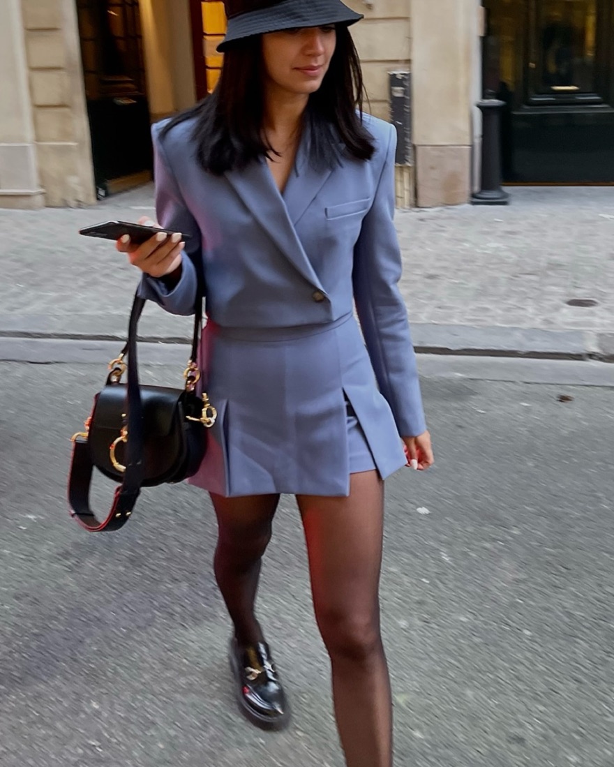 Theory Mini Skirt Suit Set -Bouclé Tweed