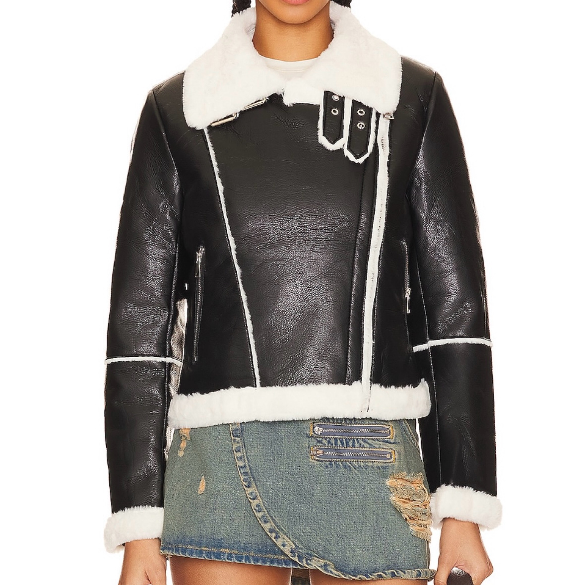 Superdown White Faux Leather Moto Jacket