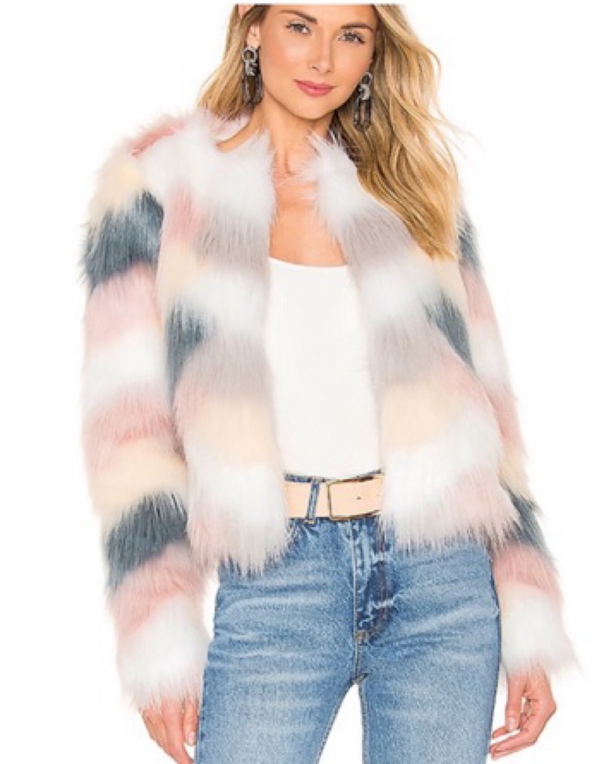 Vibrant Faux Fur Jacket with Pastel Hues