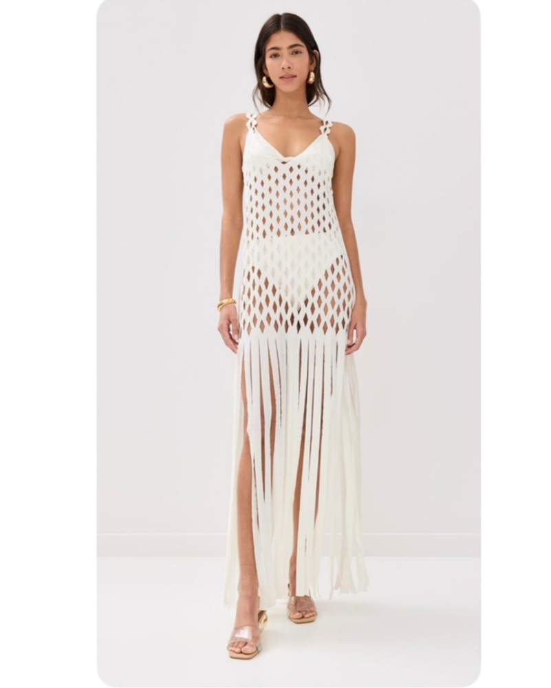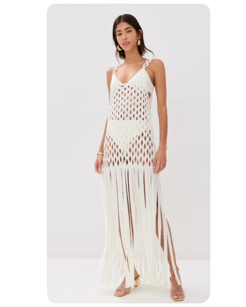 White Cover Up Fringe Cutout Dress