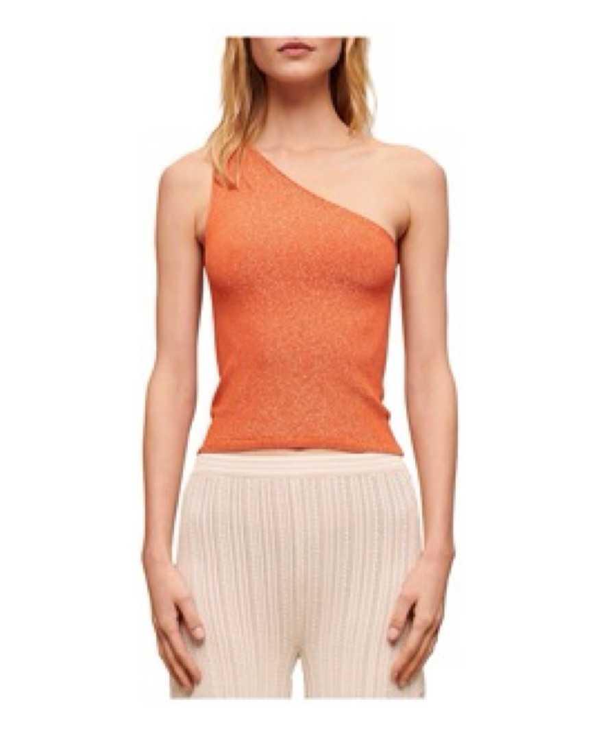 Maje Metallic One Shoulder Knit Top