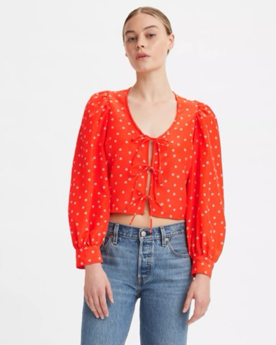 Levis Fawn tie Blouse In Orangey Red