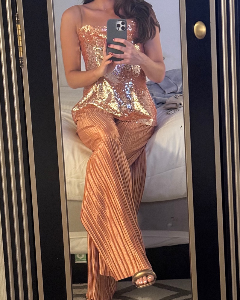 Evie Orange Satin Beaded Top