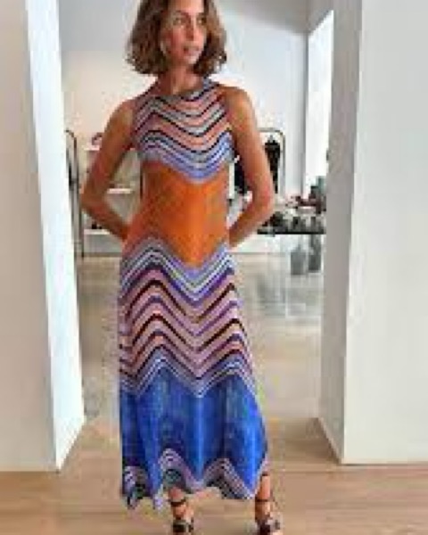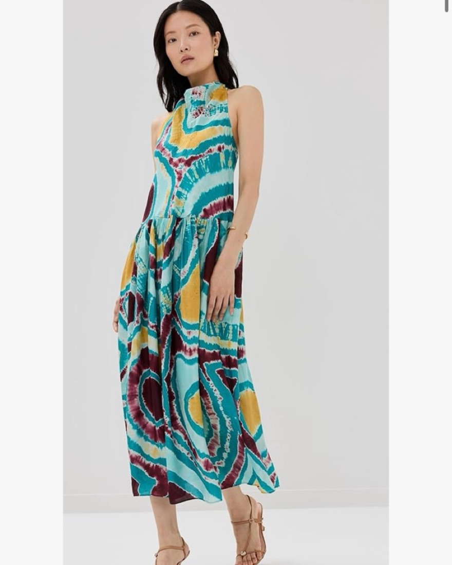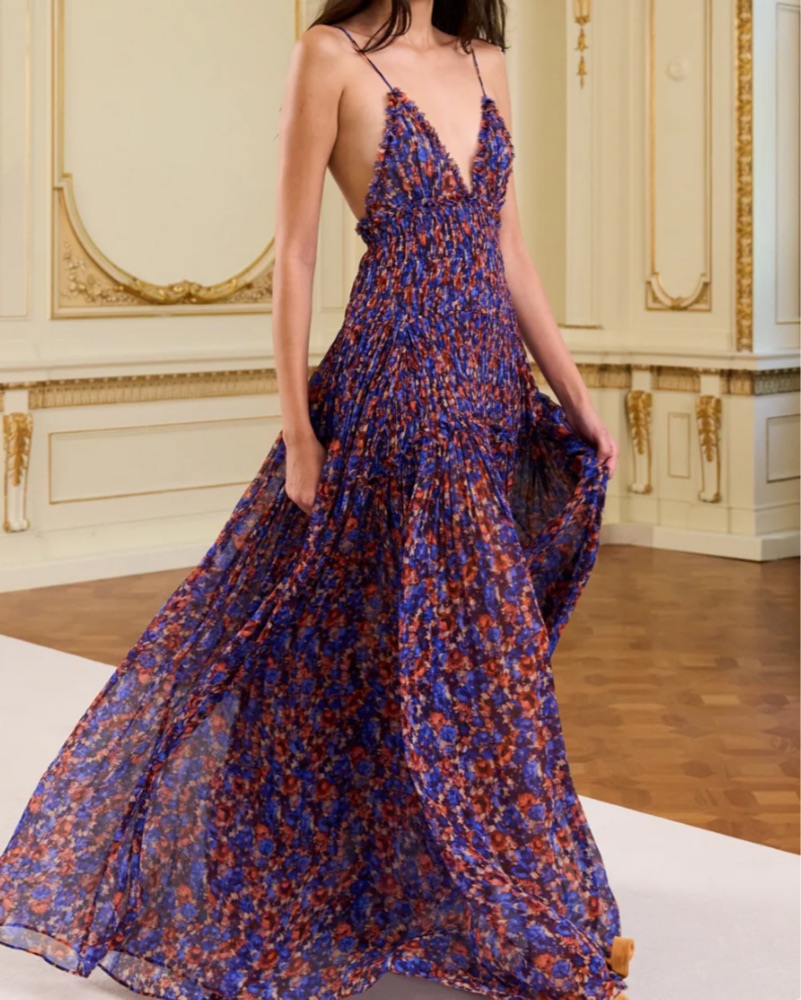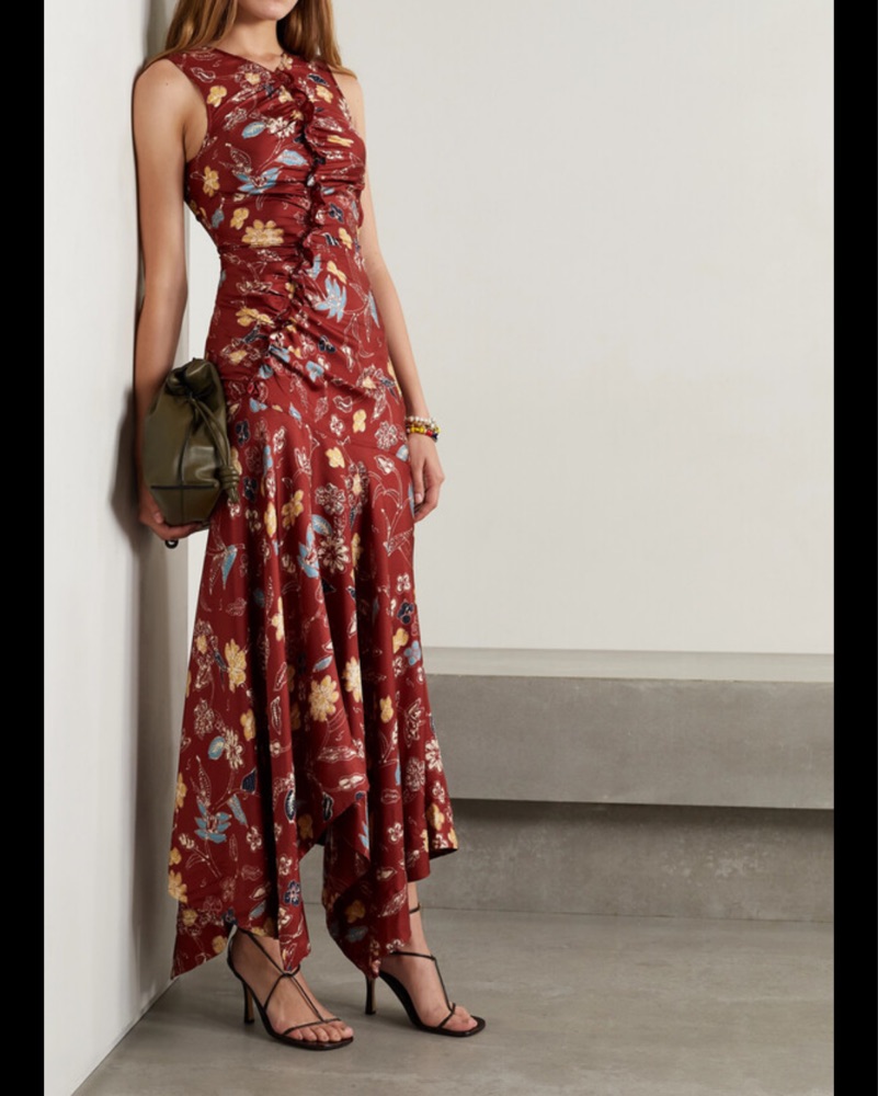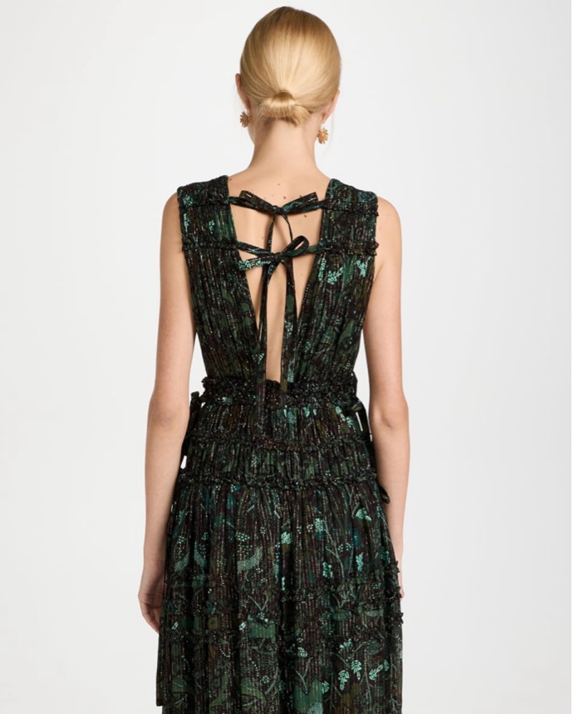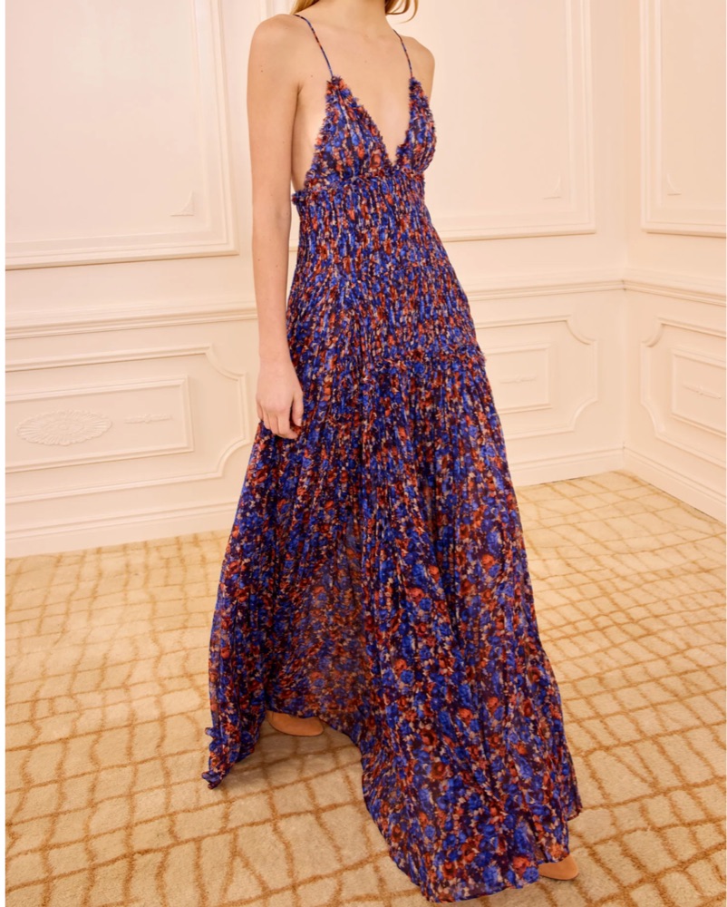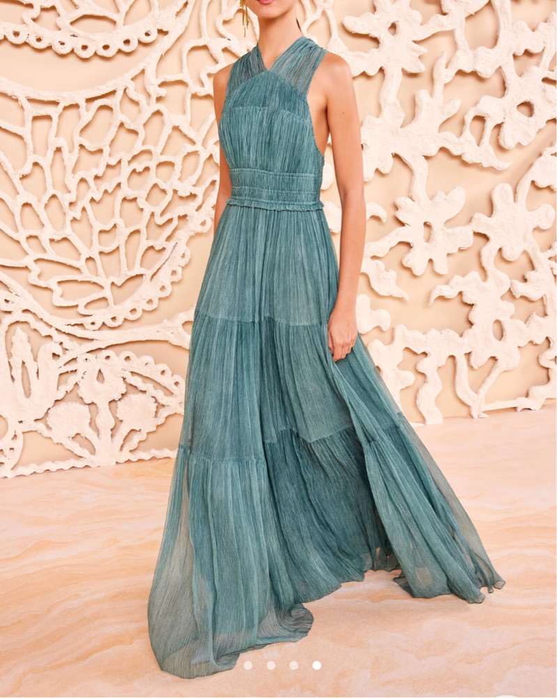 Turquoise Ruffle Silk gown ULLA JOHNSON