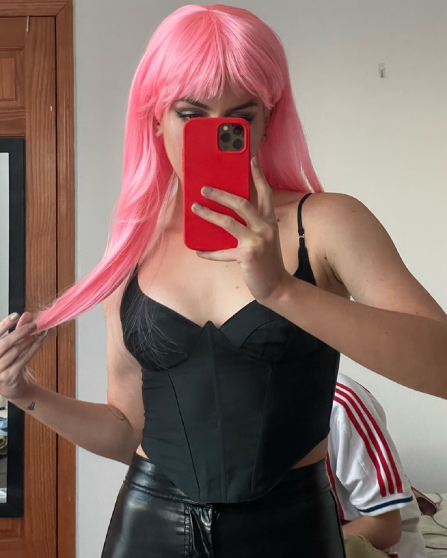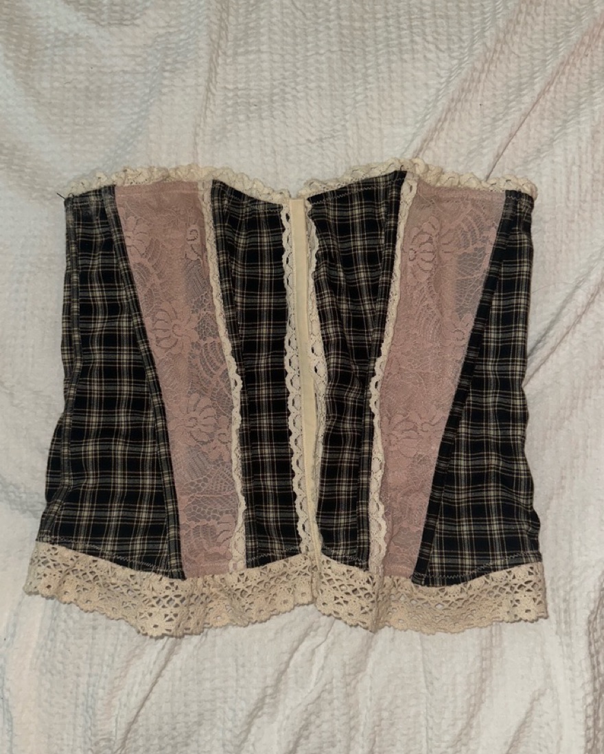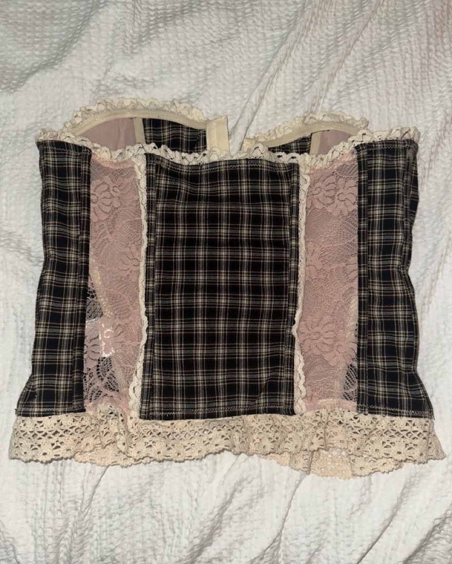 Plaid + Pink Bustier with White Lace