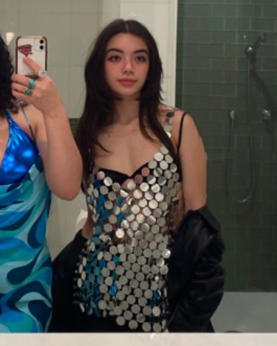 silver chain mail top