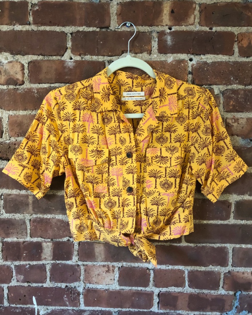 Yellow UO button down crop top