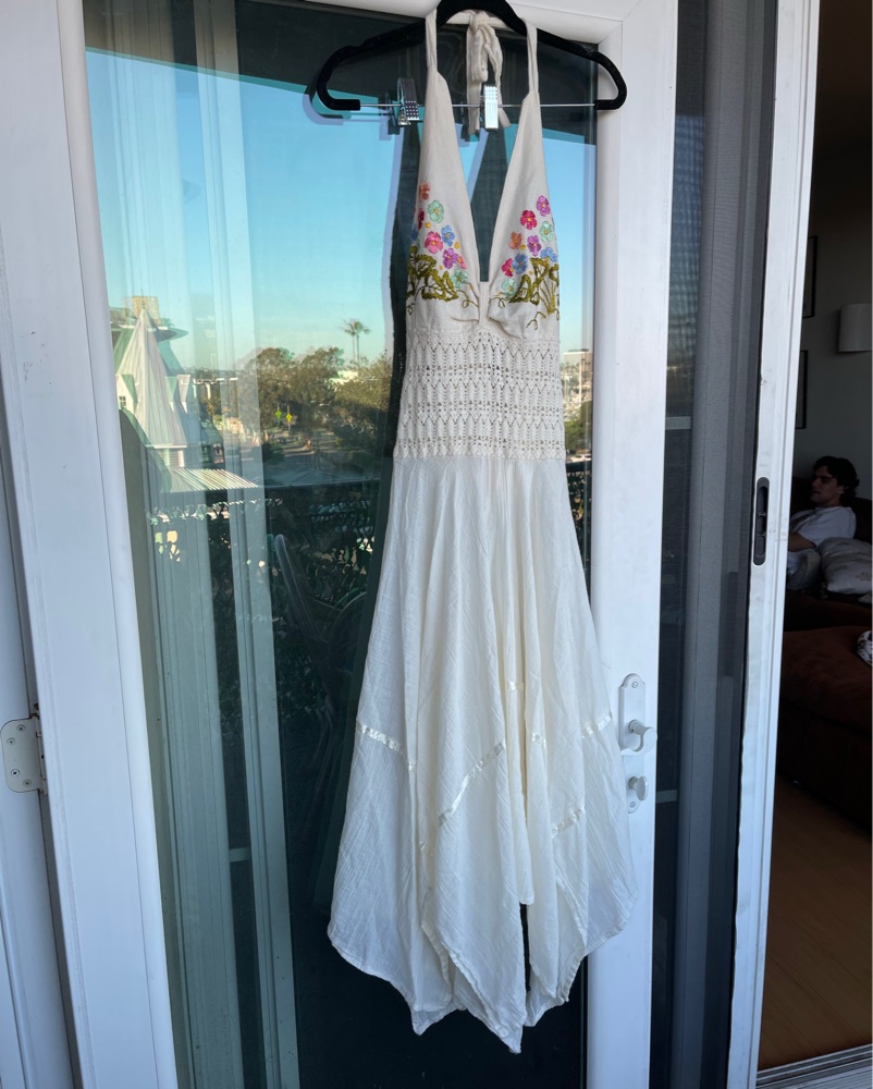 Vintage Appliqued White Maxi Dress