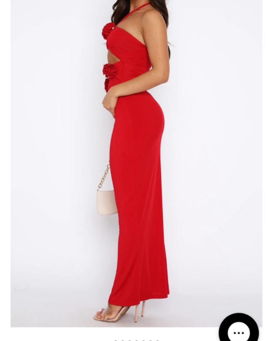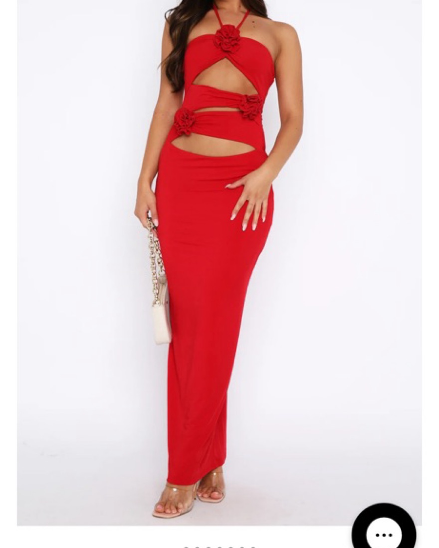 Red Maxi Rosette Cutout Dress