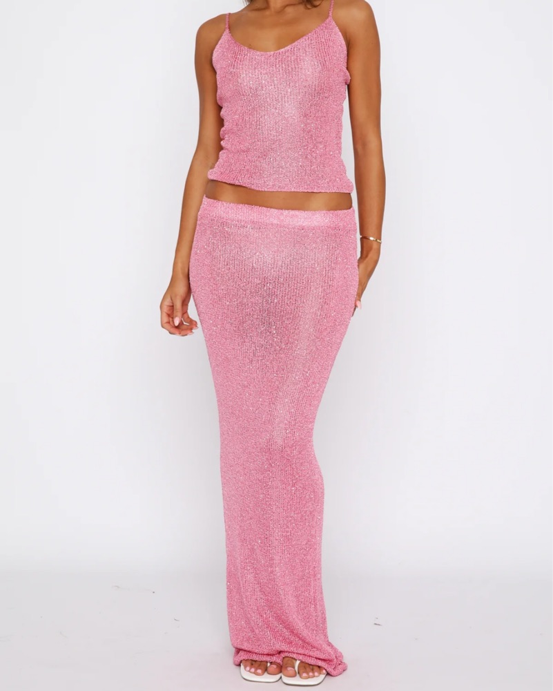 White Fox Pink Sequin Set