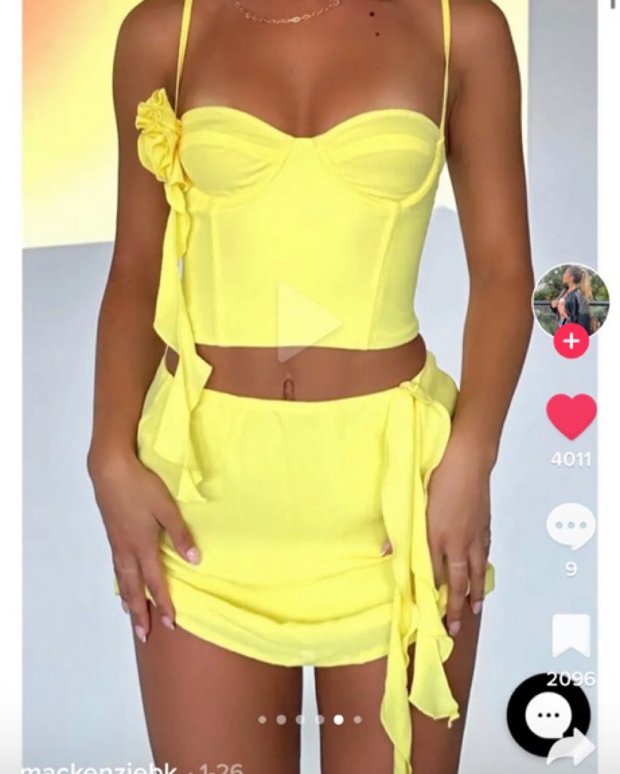 Bright Yellow 2 Piece Set With Flowers