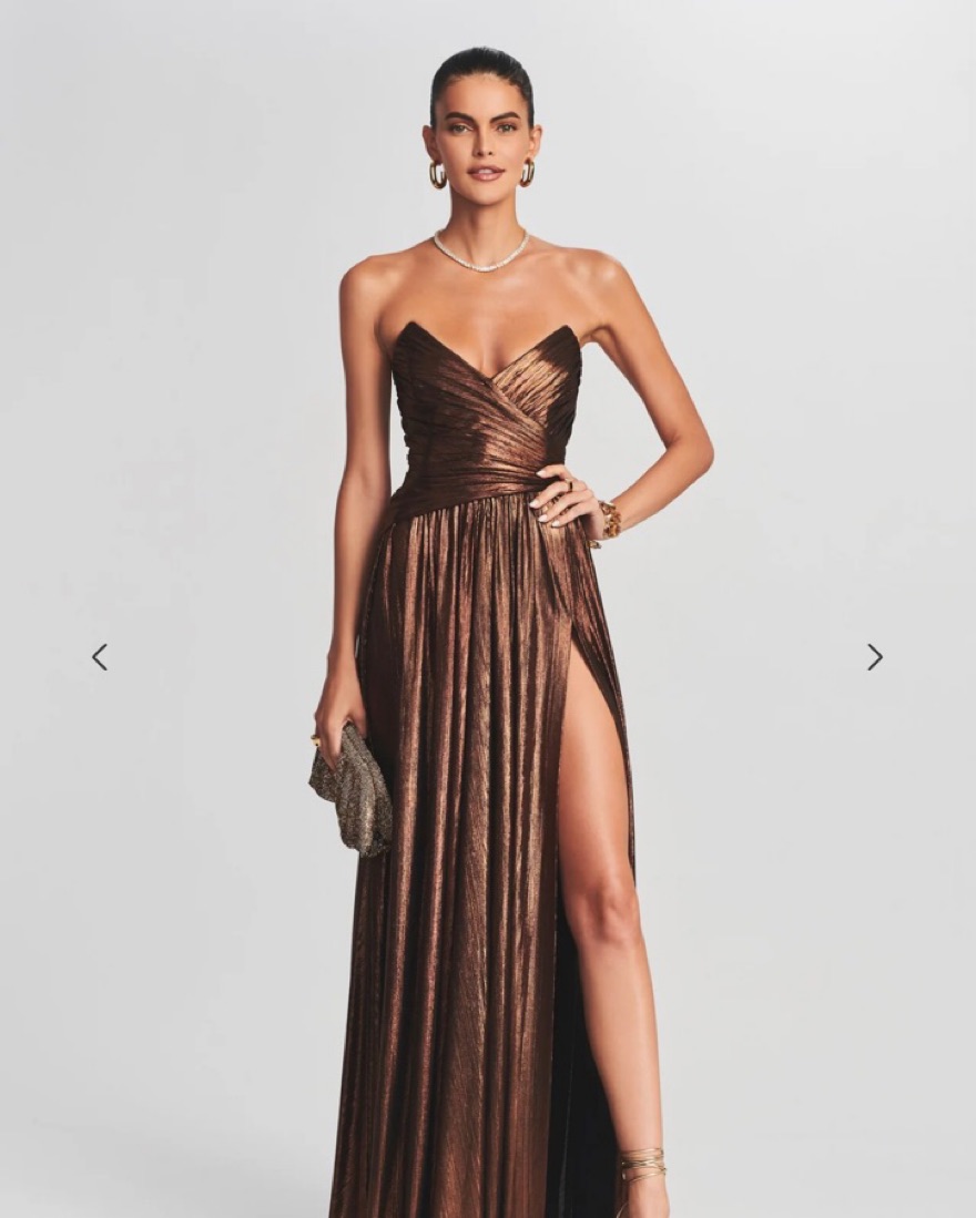 Brown Metallic Pleated Slit Gown