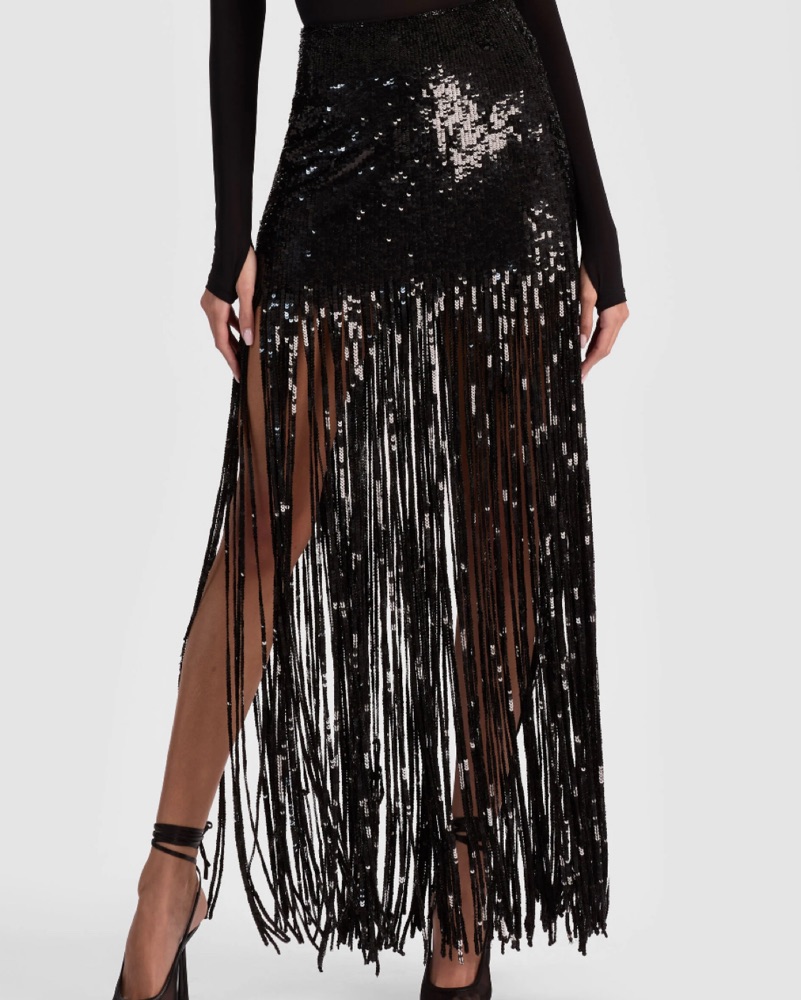 alice + olivia black sequin skirt